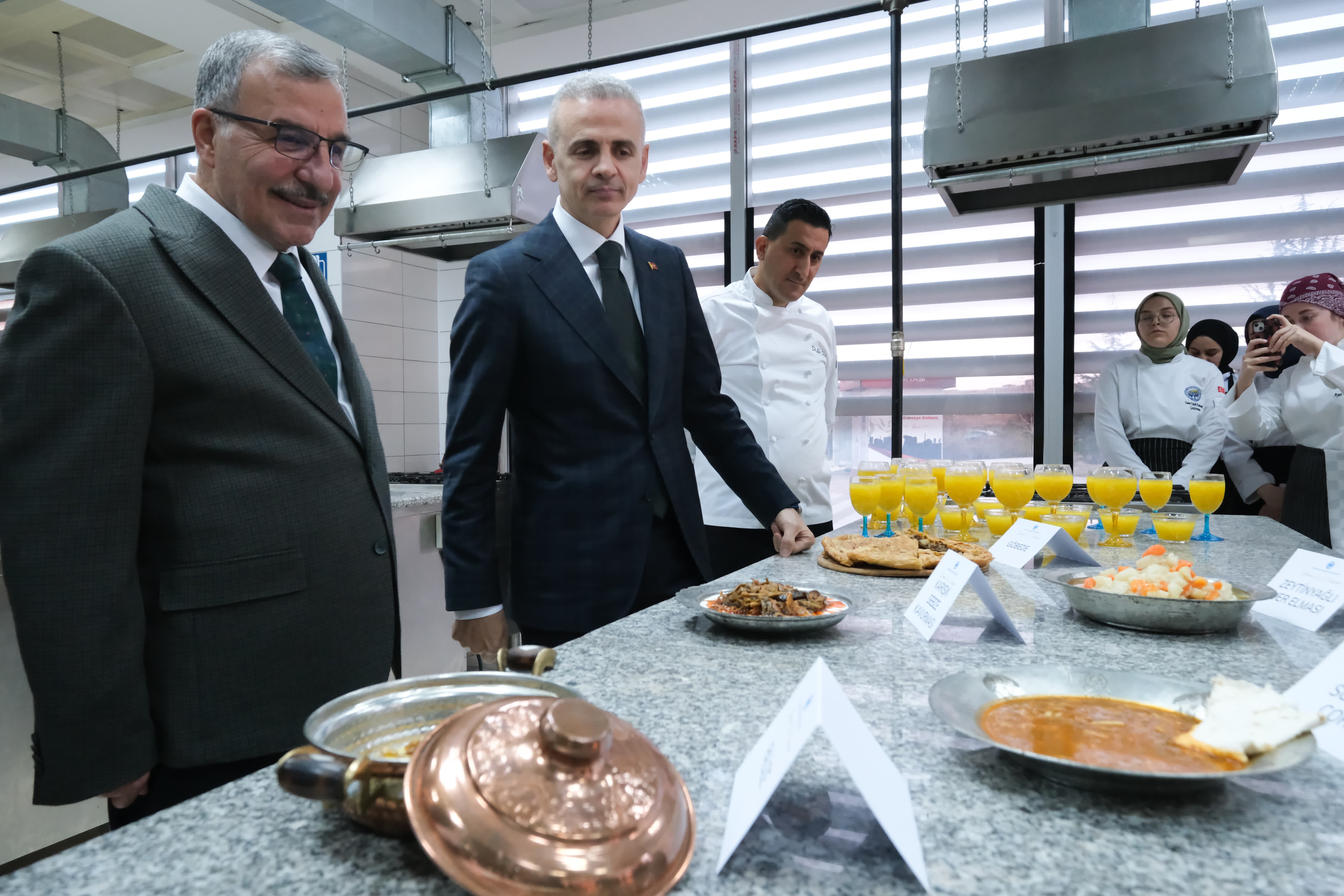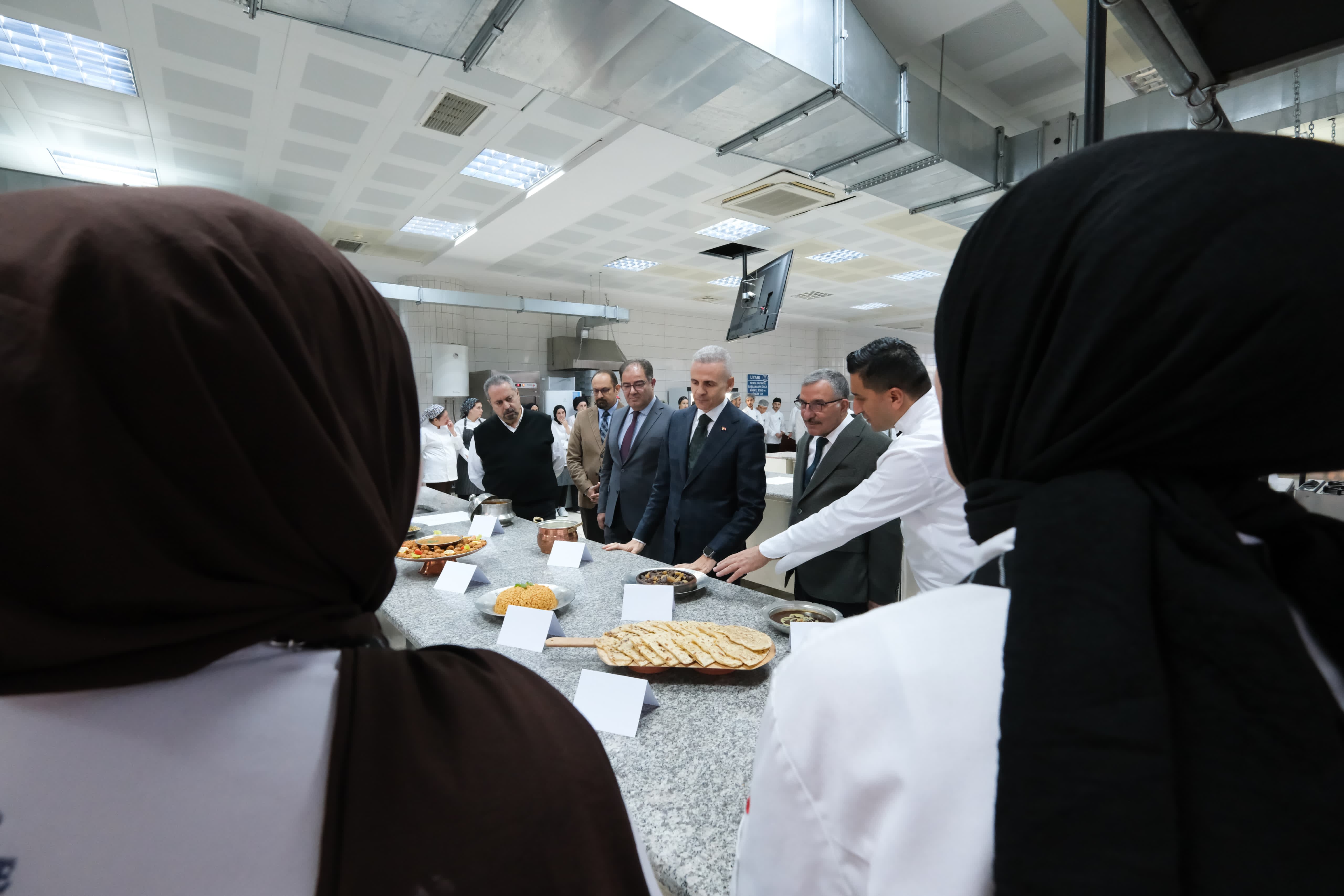 Karaman Lezzet Buluşması: Geleneksel Karaman Mutfağının ZenginliğiKaramanoğlu Mehmetbey Üniversitesi Uygulamalı Bilimler Fakültesi Gastronomi ve Mutfak Sanatları Bölümü’nün uygulama final sınavı çerçevesinde “Karaman Lezzet Buluşması” etkinliği düzenledi.Vali Mehmet Fatih Çiçekli, Karamanoğlu Mehmetbey Üniversitesi Uygulamalı Bilimler Fakültesi Gastronomi ve Mutfak Sanatları Bölümü’nün uygulama final sınavı çerçevesinde düzenlediği “Karaman Lezzet Buluşması” etkinliğine katıldı.Etkinlikte, öğrenciler tarafından Karaman’ın yöresel mutfak kültürünü yansıtan “Anne Menüsü,” “Bayram Menüsü,” “Yörük Menüsü,” “Türkmen Menüsü” ve “Özel Yemekler” temalarıyla özgün tatlar sunuldu.Her bir menü, Karaman’ın gastronomik mirasını yansıtan lezzetlerle zenginleştirilirken, Rıza Duru’nun kitabından da faydalanılan