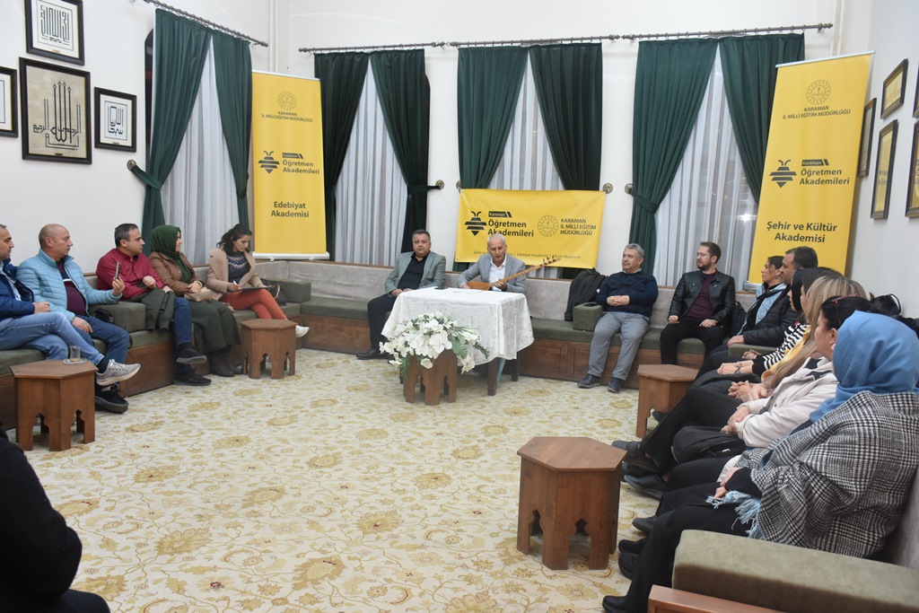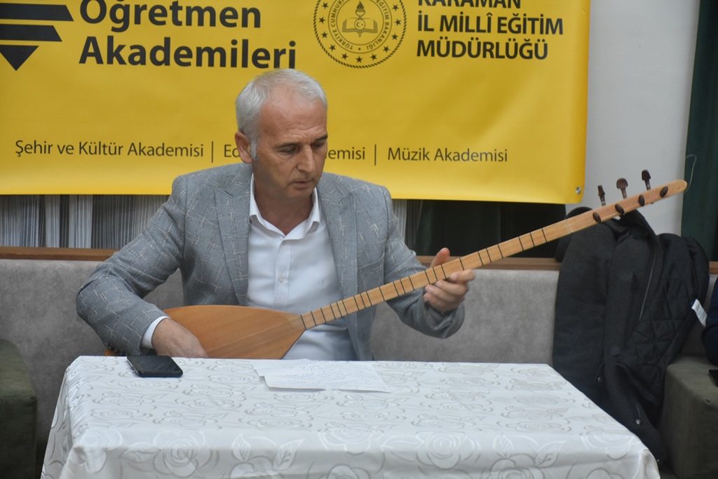 Programın ilerleyen dakikalarında Mesut Murat, Karaman yöresine özgü türkülerden örnekler seslendirerek katılımcıları bölge kültürüne daha da yaklaştırdı. Karaman’ın doğasına, yaşam tarzına, sevinç ve hüzünlerine ayna tutan bu türküler, salondaki öğretmenlere hem nostaljik bir deneyim yaşattı hem de türkülerin yerel kültür üzerindeki etkisini bir kez daha ortaya koydu.