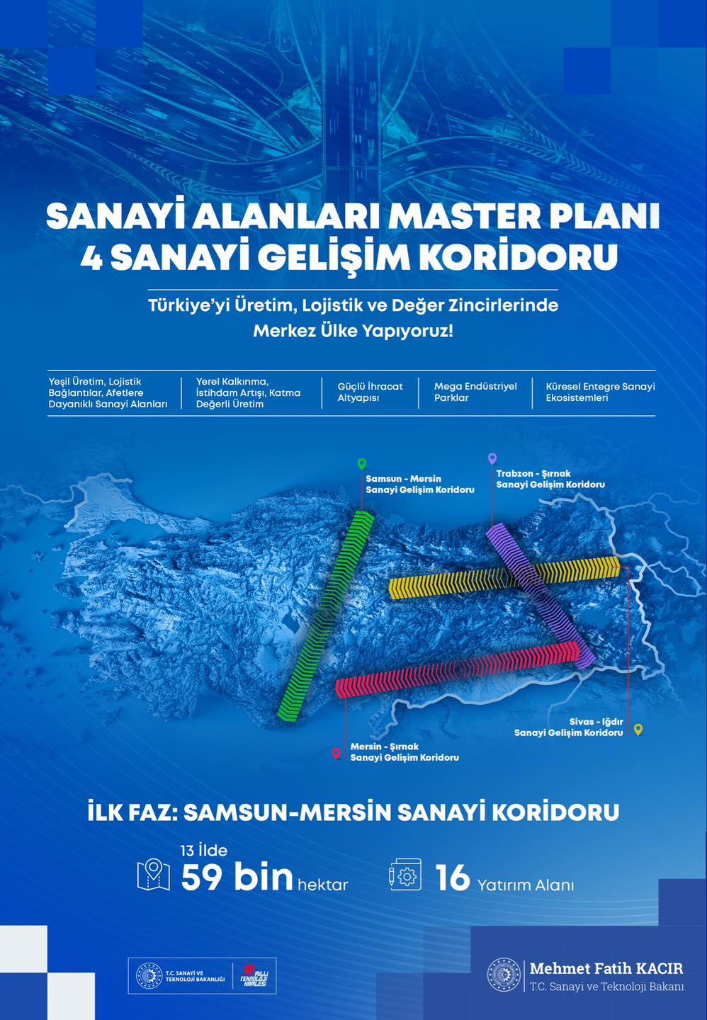 Türkiye’nin uzun vadeli sanayi vizyonunu ortaya koyan Sanayi Alanları Master Planı kapsamında Karaman, yeni yatırım alanlarıyla öne çıkan illerden biri oldu. Planın ilk fazında Samsun–Mersin hattı üzerinde yer alan Karaman’da yeni sanayi alanları ilan edilerek, ilin üretim kapasitesinin ve rekabet gücünün artırılması amaçlandı.
