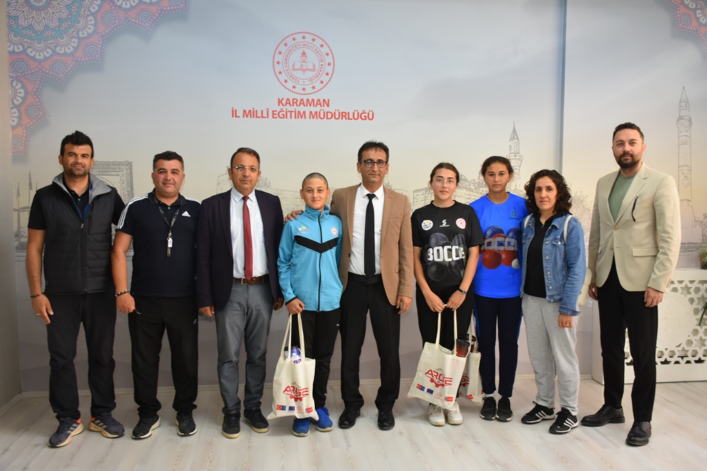 Bu kutlu zaferin ardından başarılı sporcular, okul müdürleri ve beden eğitimi öğretmenleriyle birlikte İl Milli Eğitim Müdürü Mehmet Çalışkan’ı ziyaret etti. Başarılarından dolayı öğrencileri tebrik eden İl Müdürü Mehmet Çalışkan, “Karaman Bocce-Petank Takımı'nın zaferi, sadece bir spor müsabakasının sonucu değil, aynı zamanda gençlerin potansiyeline olan güvenin ve onlara sağlanan destek ve rehberliğin bir kanıtıdır. Bu başarı, Türk sporunun geleceği için umut verici bir işarettir. Emeğinizin karşılığını almanız bizleri mutlu etti. Bu başarınızda emeği olan herkese teşekkür ediyorum. Hayatınızda güzel anılar ve başarılar biriktirmeniz dileğiyle yolunuz ve bahtınız açık olsun.” dedi.