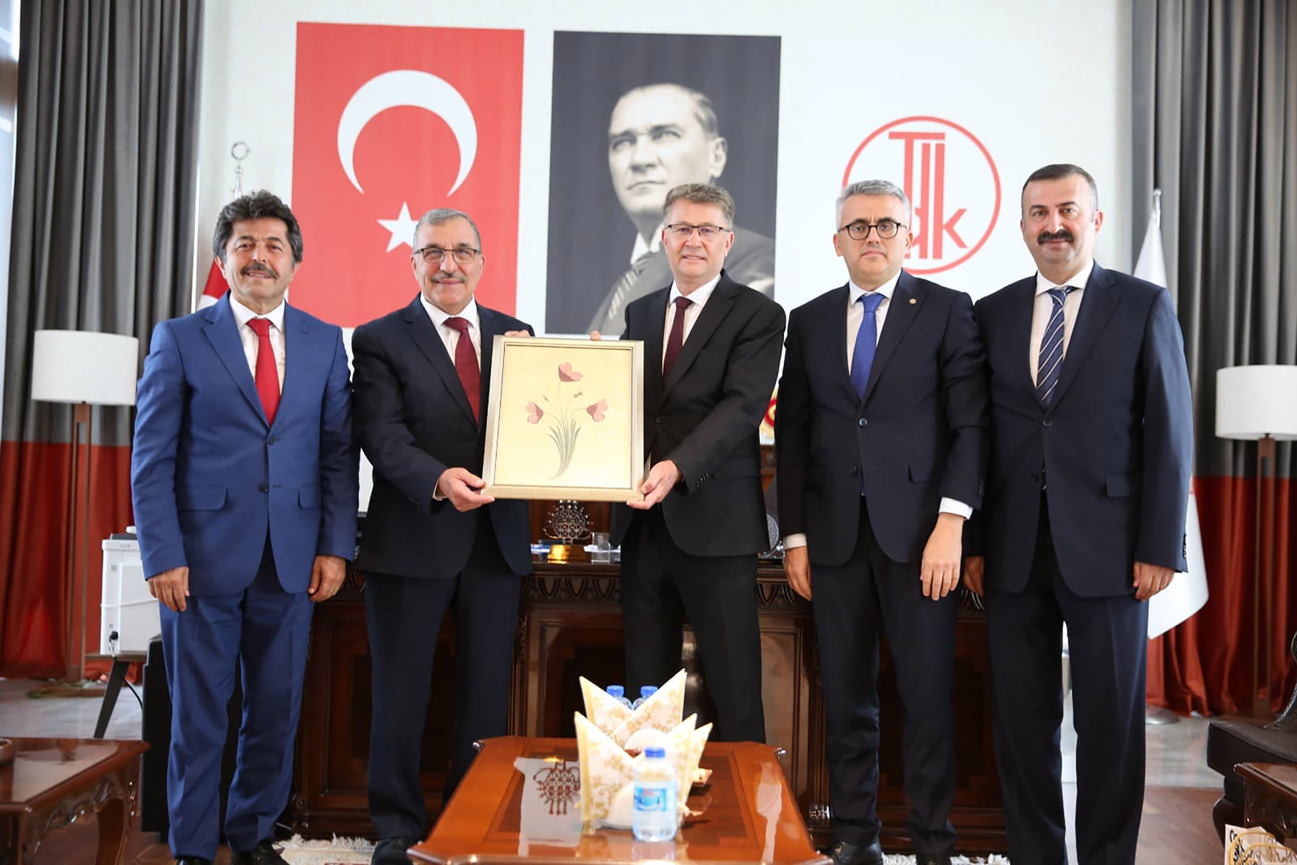 Ziyaretler kapsamında ilk olarak Türk Dil Kurumu Başkanı Prof. Dr. Osman Mert ile bir araya gelen heyet, üniversite ile kurum arasında yürütülebilecek ortak projeler ve iş birliği alanları üzerine fikir alışverişinde bulundu. Görüşmede, bilimsel çalışmaların desteklenmesi, ortak etkinliklerin düzenlenmesi ve Türk dili üzerine yapılacak projelerde birlikte hareket edilmesi konusunda mutabakata varıldı.