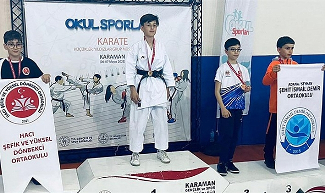 Karaman Özel Başarı Koleji 8. Sınıf öğrencisi Göktuğ Gökalp Mete, okul sporları karate grup müsabakaları yıldız erkekler kumite de altın madalyanın sahibi oldu.Karaman’da Gençlik ve Spor İl Müdürlüğü’nün ev sahipliğinde 16 ilden 289 sporcunun katılımıyla düzenlenen Okul Sporları Küçükler-Yıldızlar Karate Grup müsabakalarında karate antrenörü İhsan Özbek eşliğinde 34 kiloda tatamiye çıkan Karaman Özel Başarı Koleji 8. Sınıf öğrencisi Göktuğ Gökalp Mete, yıldız erkekler kumite de altın madalya kazanarak Kırşehir’de düzenlenecek Türkiye Birinciliği Yarışmalarında Karaman’ı temsil etmeye hak kazandı.Altın madalya kazanarak büyük bir başarıya imza atan Göktuğ Gökalp Mete’yi tebrik eden Gençlik ve Spor İl Müdürü Ali Osman Bebek, Kırşehir’de düzenlenecek Türkiye Birinciliği Yarışmalarında başarılar diledi.
