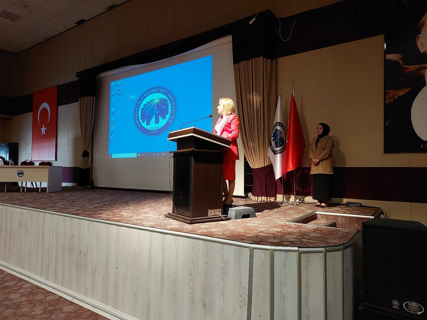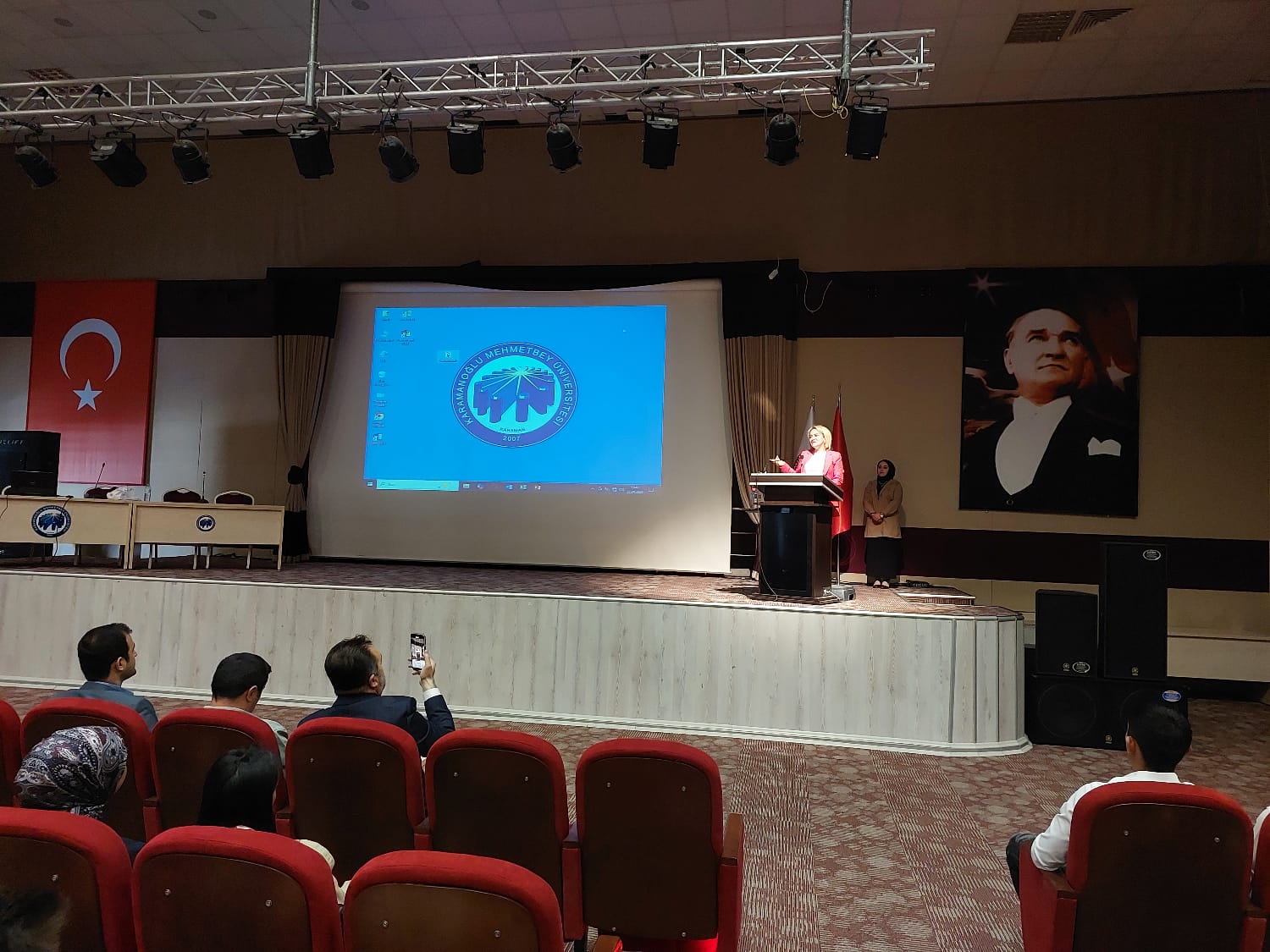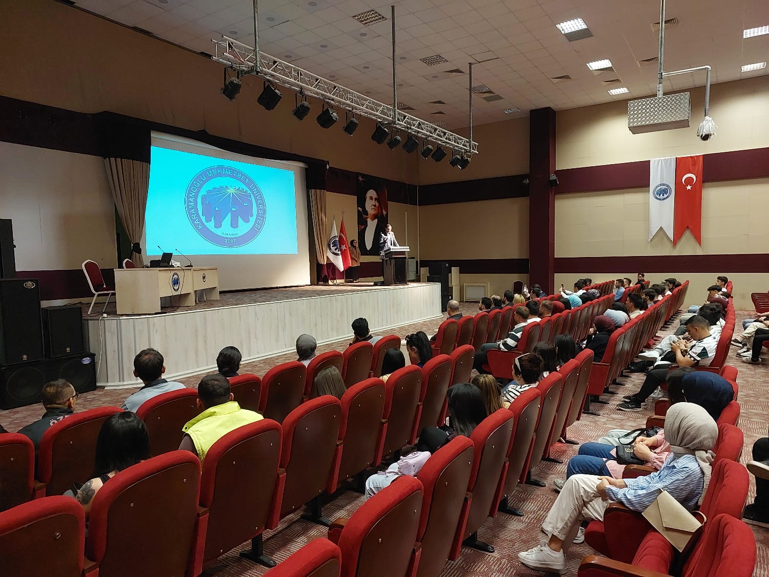 # KARAMAN – 22 Nisan 2025 – Karamanoğlu Mehmetbey Üniversitesi (KMU) Sosyal Bilimler Meslek Yüksekokulu ev sahipliğinde# Güvenlik ve Koruma Topluluğu tarafından (ÖGED) Yönetim Kurulu Başkanı Dilek Oran ana konuşmacı olarak katıldı.# KARAMAN KARAMAN HABER KARA