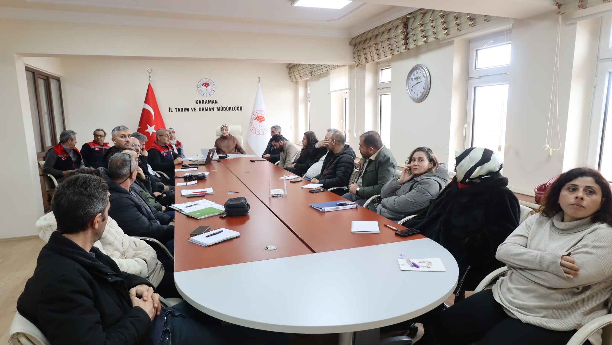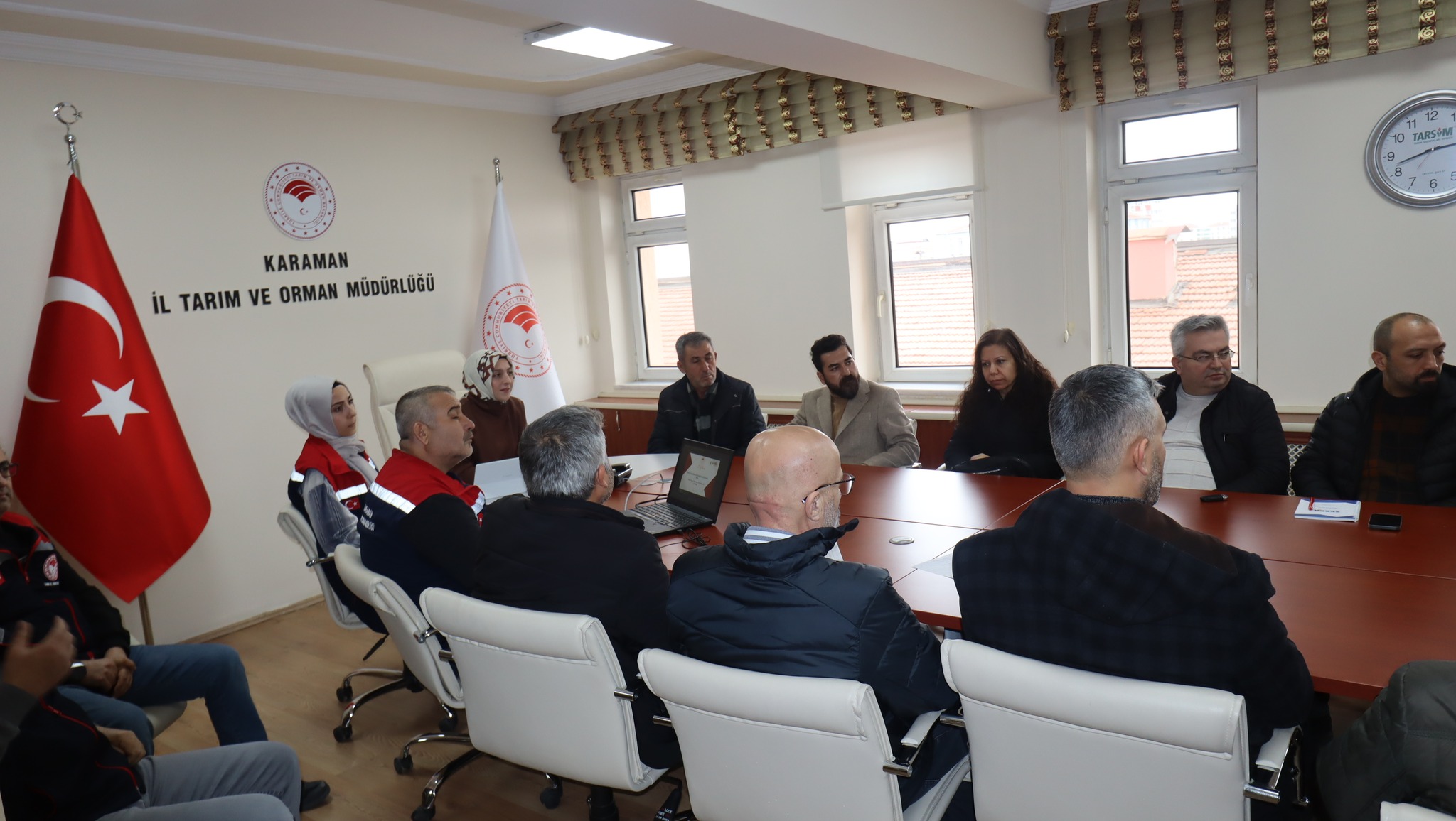 KIRSAL KALKINMA DESTEKLERİ KAPSAMINDA BİLGİLENDİRME TOPLANTISI GERÇEKLEŞTİRİLDİKIRSAL KALKINMA DESTEKLERİ KAPSAMINDA TARIMA DAYALI YATIRIMLARIN DESTEKLENMESİ HAKKINDA BİLGİLENDİRME TOPLANTISI GERÇEKLEŞTİRİLDİ.Karaman İl Tarım ve Orman Müdürlüğü Hatice Bulut Başkanlığında, Ziraat Odası Başkanı Mehmet Bayram, Süt Üreticileri Birliği Başkanı Yiğit Dorla, Elma Üreticileri Birliği Başkanı Celil Serim, Karaman Bölgesi Sulama Kooperatifleri Birliği Başkanı Hacı Mustafa Baykara, Damızlık Sığır Yetiştiricileri Birliği , ilimizde faaliyet gösteren proje danışmanlık ofis yetkilileri ve konu uzmanı personelin katılımları ile bilgilendirme toplantısı düzenlendi.İl Müdürü Hatice Bulut yapmış olduğu açılış konuşmasında 2024 yılında ilimizde yapılan başvuruların tamamının kabul edildiğini ve proje kapsamında yaklaşık 38 Milyon TL hibe verildiğini bu yıl başvuru sayısı ve hibe miktarının daha fazla olması için işbirliği içinde çalışmanın önemli olduğunu vurguladı.Toplantıda Kırsal Kalkınma Destekleri Kapsamında, Tarıma Dayalı Altyapı ve Ekonomik Yatırımlar, Bireysel Sulama Sistemleri Destekleri , Teşvikler Hakkında Kırsal Kalkınma ve Örgütlenme Şube Müdürü Raşit Balta tarafından Hibe Destekleri ile başvuru şartları hakkında bilgi verildi.