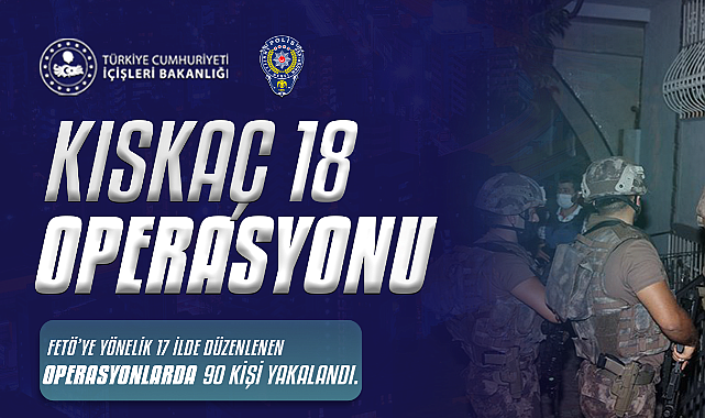 İçişleri Bakanı Ali Yerlikaya, son 4 gün içinde 17 ilde FETÖ’ye yönelik düzenlenen “KISKAÇ-18” operasyonlarında 90 şüphelinin yakalandığını açıkladı. Bakan Yerlikaya, "FETÖ’cülere göz açtırmayacağız. Aziz milletimizin huzuru, birlik ve beraberliği için güvenlik güçlerimizin üstün gayretleriyle operasyonlarımız kararlılıkla devam edecek" dedi. Yakalanan Şüpheliler: