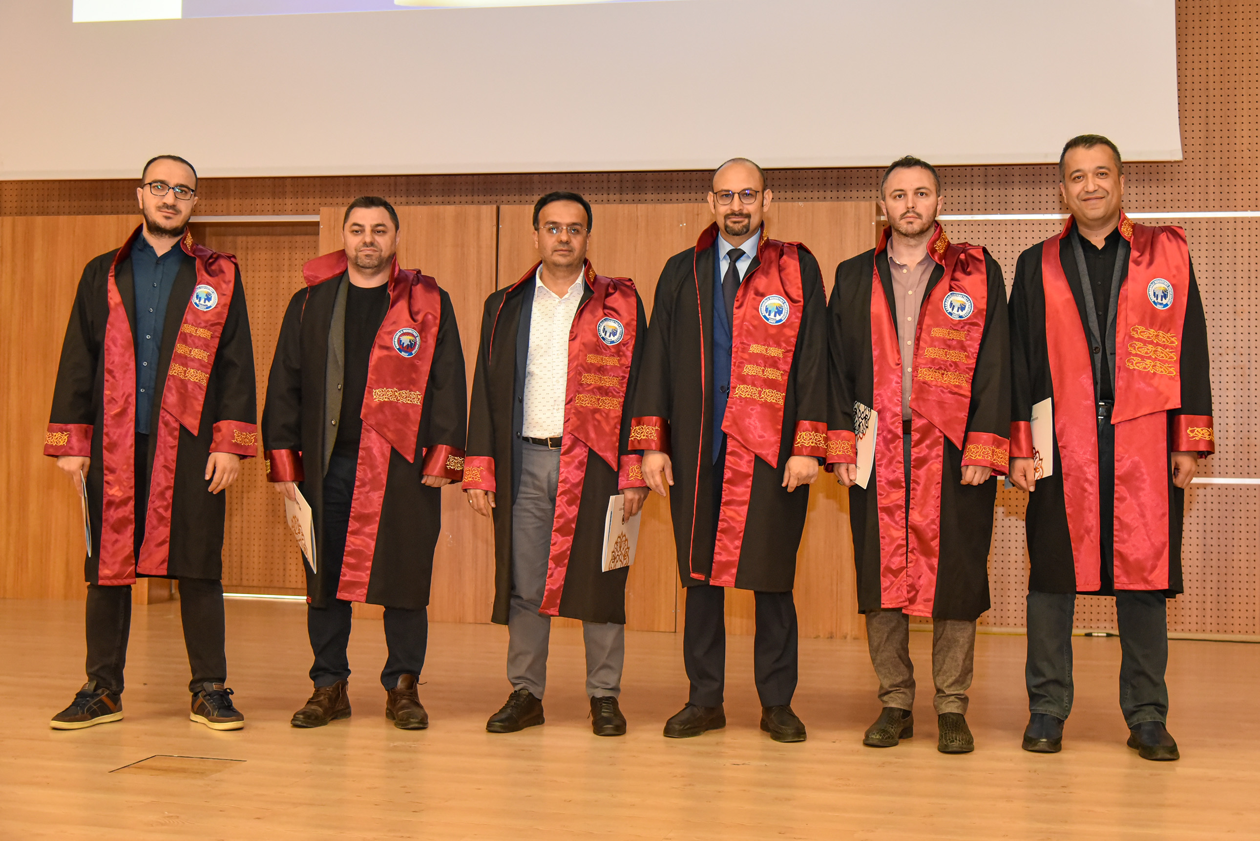 Başarı belgelerinin ardından üniversitede 2023 yılında doçentlik ve profesörlük kadrosuna atanan akademisyenlere binişlerini Rektör Mehmet Gavgalı tarafından giydirildi.