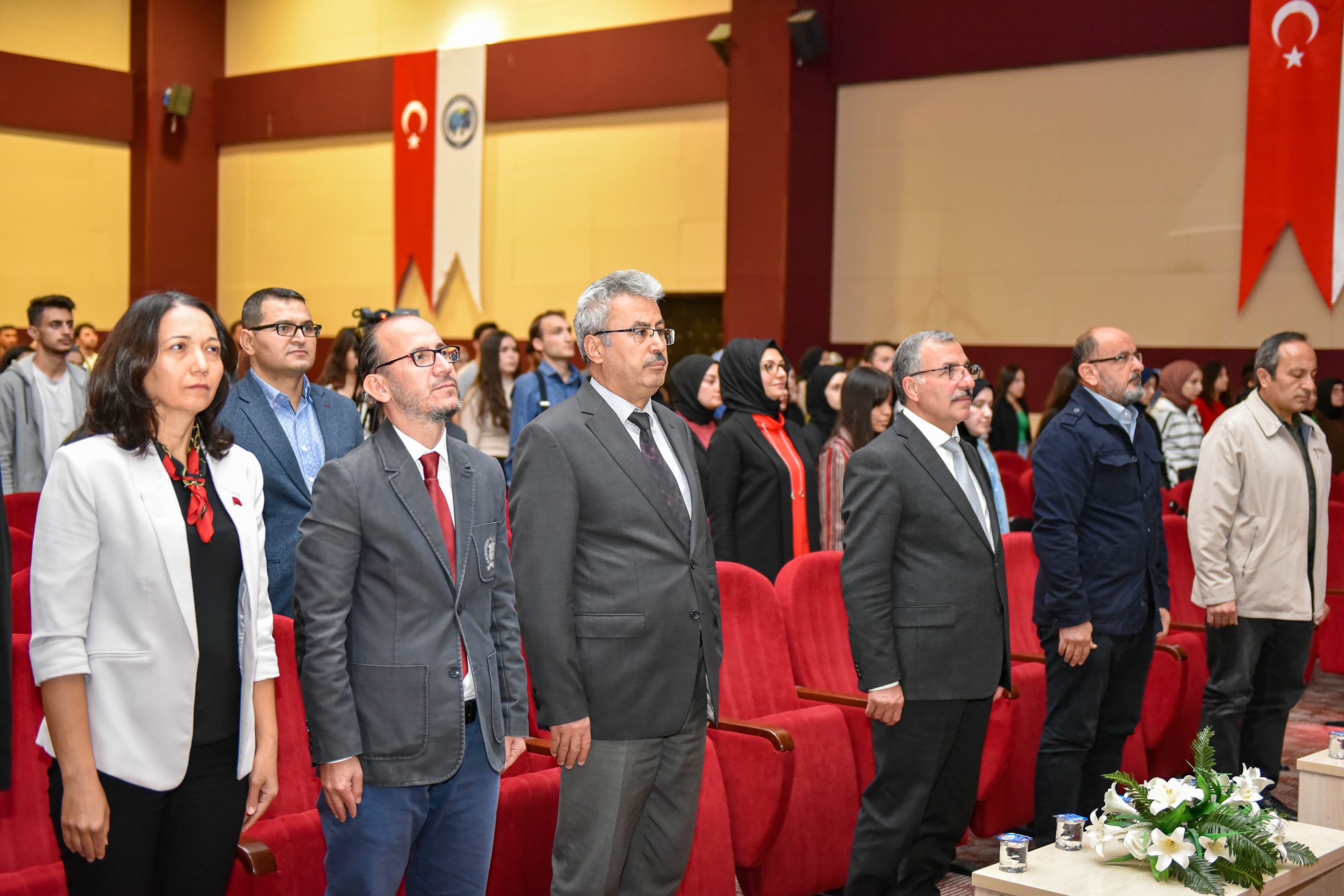 KMÜ Rektörü Prof. Dr. Mehmet Gavgalı, üniversite personeli ve çok sayıda öğrencinin katıldığı program, saygı duruşunda bulunulması ve İstiklal Marşı’nın okunmasıyla başladı.