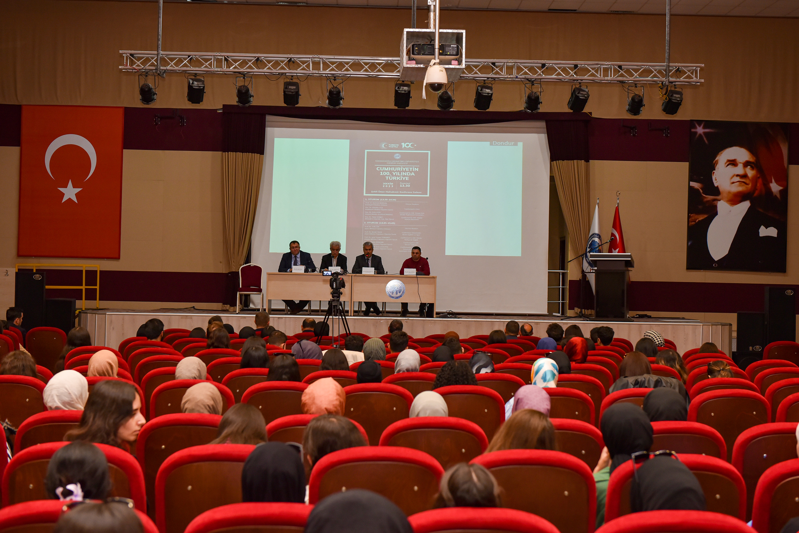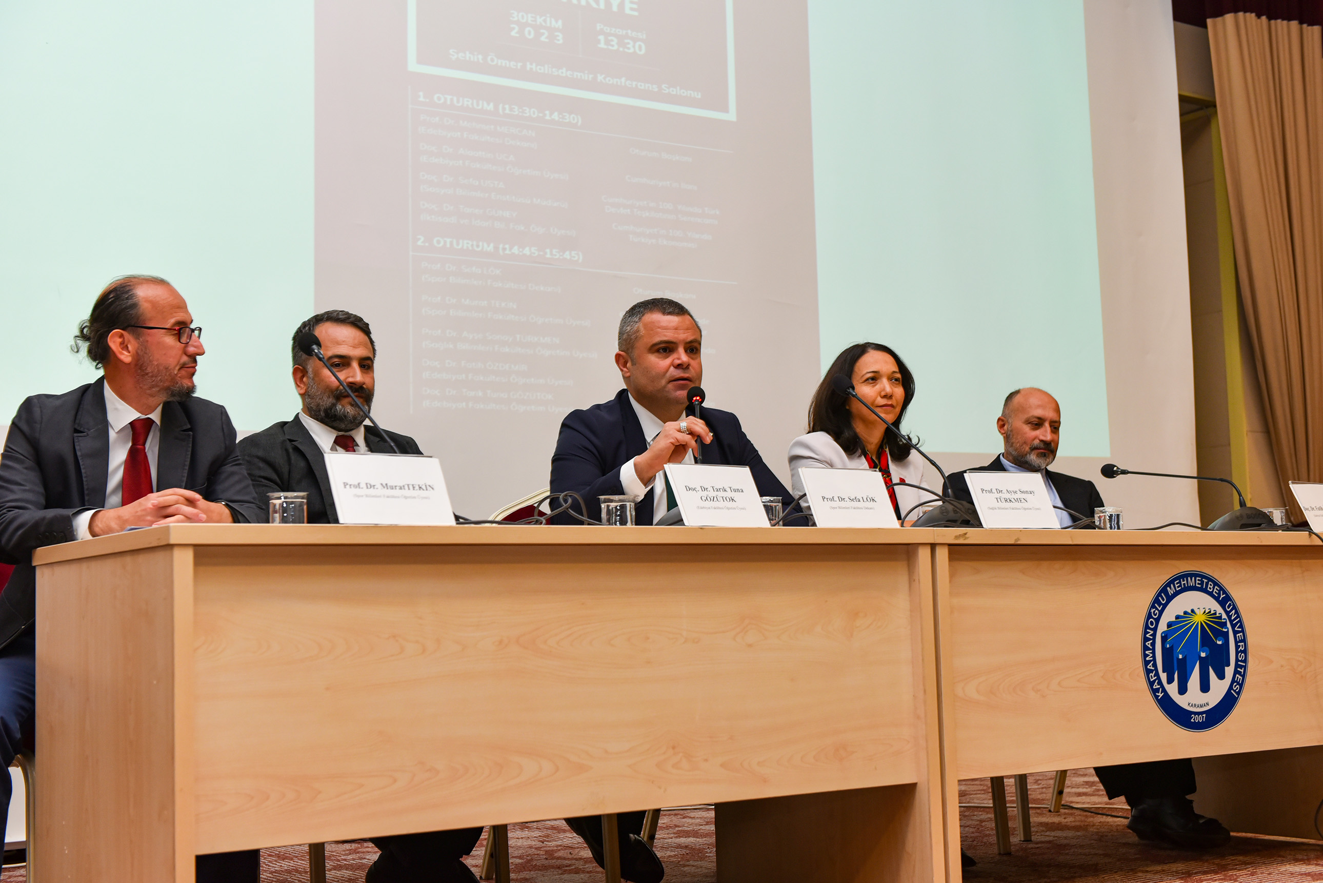 Programın son konuşmacısı Edebiyat Fakültesi Öğretim Üyesi Doç. Dr. Tarık Tuna Gözütok, ‘Cumhuriyet’in 100. Yılında Üniversite ve Bilim; Geçmişten Geleceğe Bir Bakış’ konulu sunumu ile katılımcıları aydınlattı.