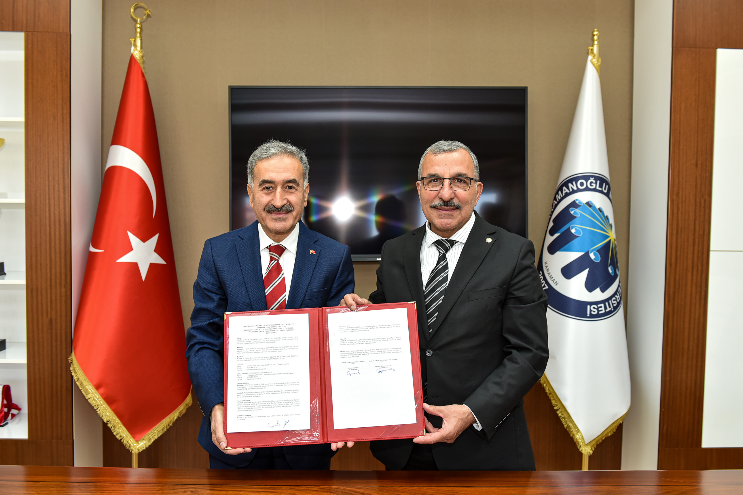 KMÜ Rektörü Prof. Dr. Mehmet Gavgalı ile HEFİAD Genel Başkanı Mehmet Gürdaş’ın imzasıyla yürürlüğe giren protokol ile Cumhuriyetin 100. yılı anısına ‘Olmak’ konulu makale yarışması düzenlenecek.