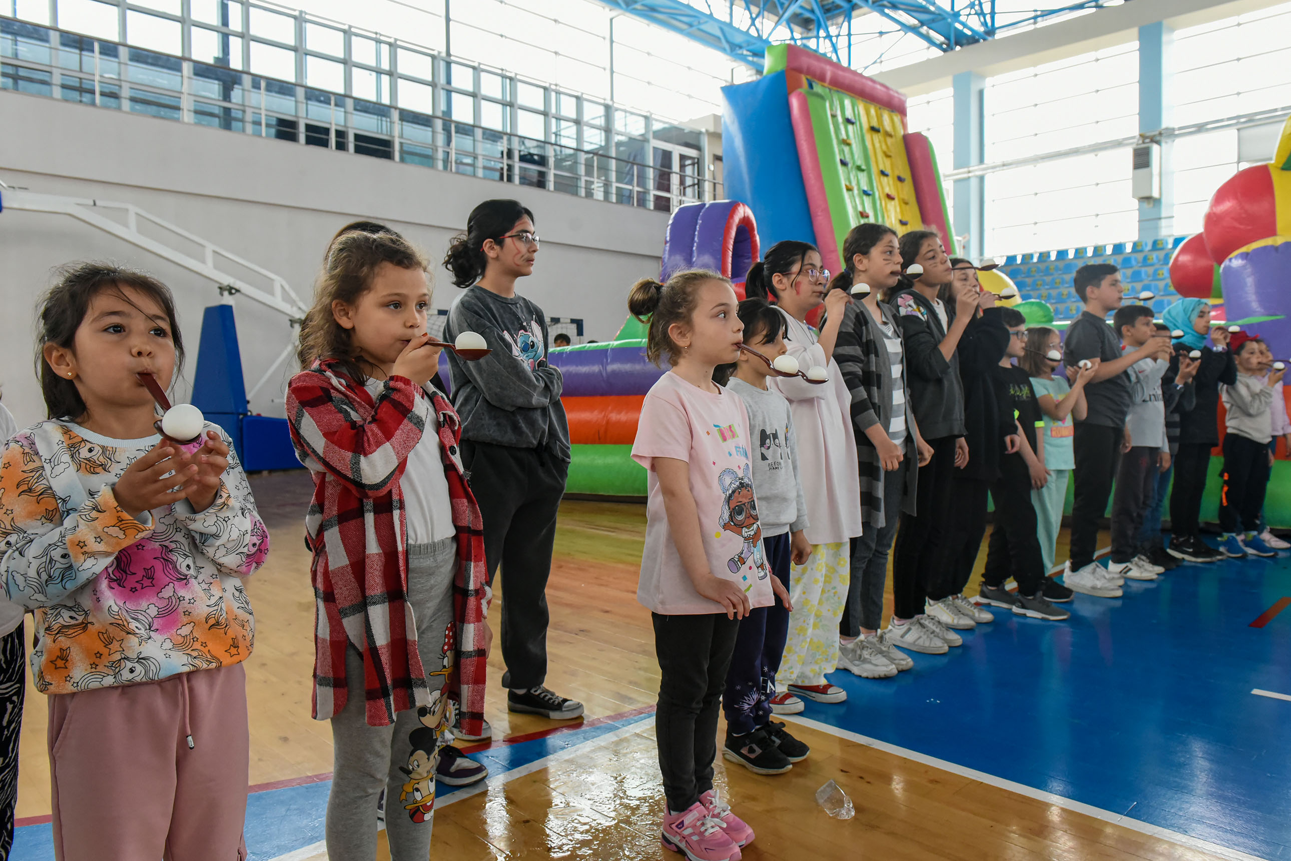 Rektör Gavgalı’nın konuşmasının ardından halk oyunları gösterisi sergilendi. Şenlikte çocuklar halat çekme, sandalye kapma, çuval yarışması gibi farklı oyunlarda doyasıya eğlendi. Yunus Emre Ortaokulu 6. sınıf öğrencisi Emin Bekir Başaran’ın model uçak gösterisi de ilgiyle izlendi.