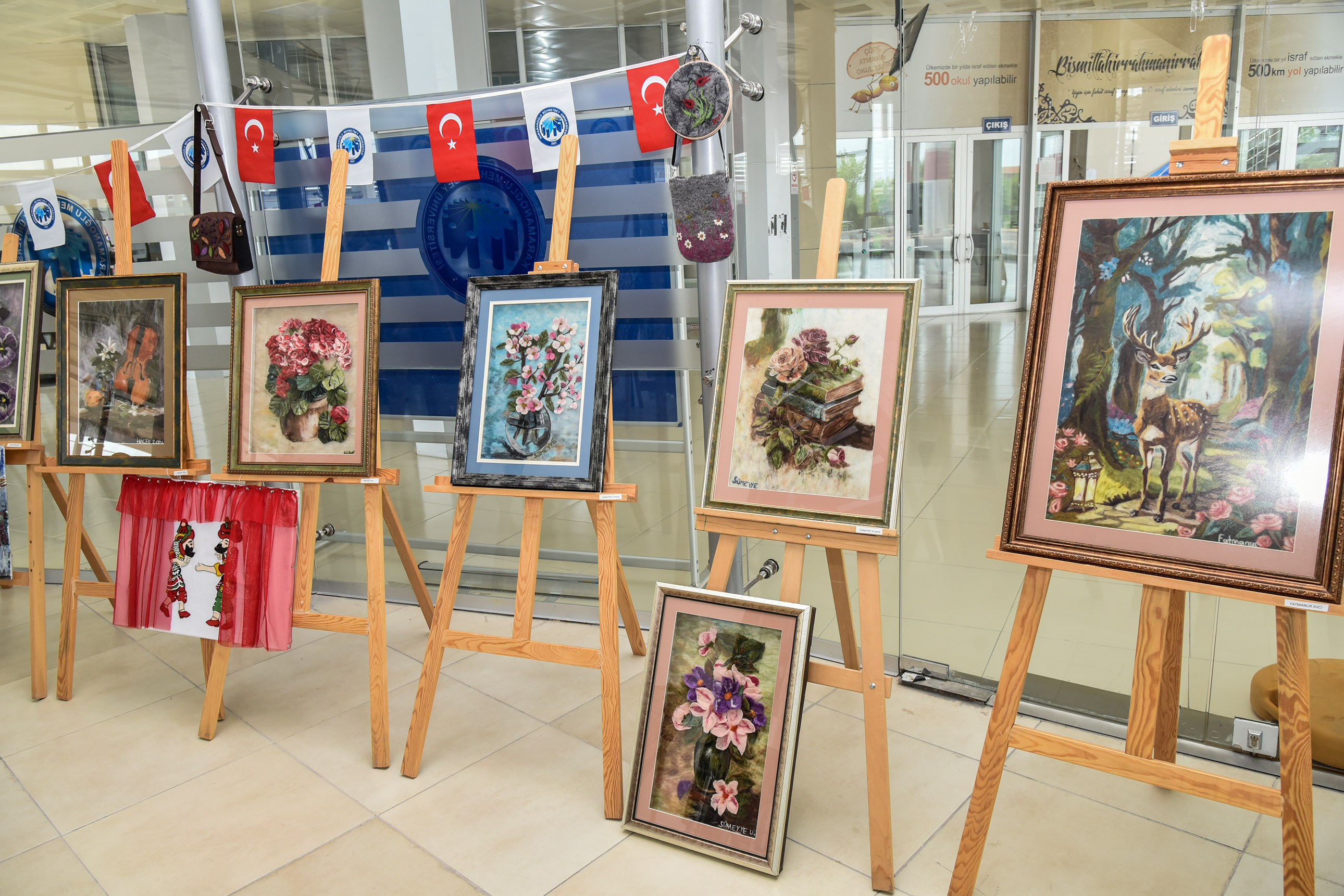 Teknik Bilimler Meslek Yüksekokulu El Sanatları Bölümü Mimari Dekoratif Sanatlar Programı ve Geleneksel El Sanatları Programı ile Tasarım Bölümü Grafik Tasarımı Programı öğrencileri tarafından hazırlanan eserler sanatseverlerin beğenisine sunuldu.