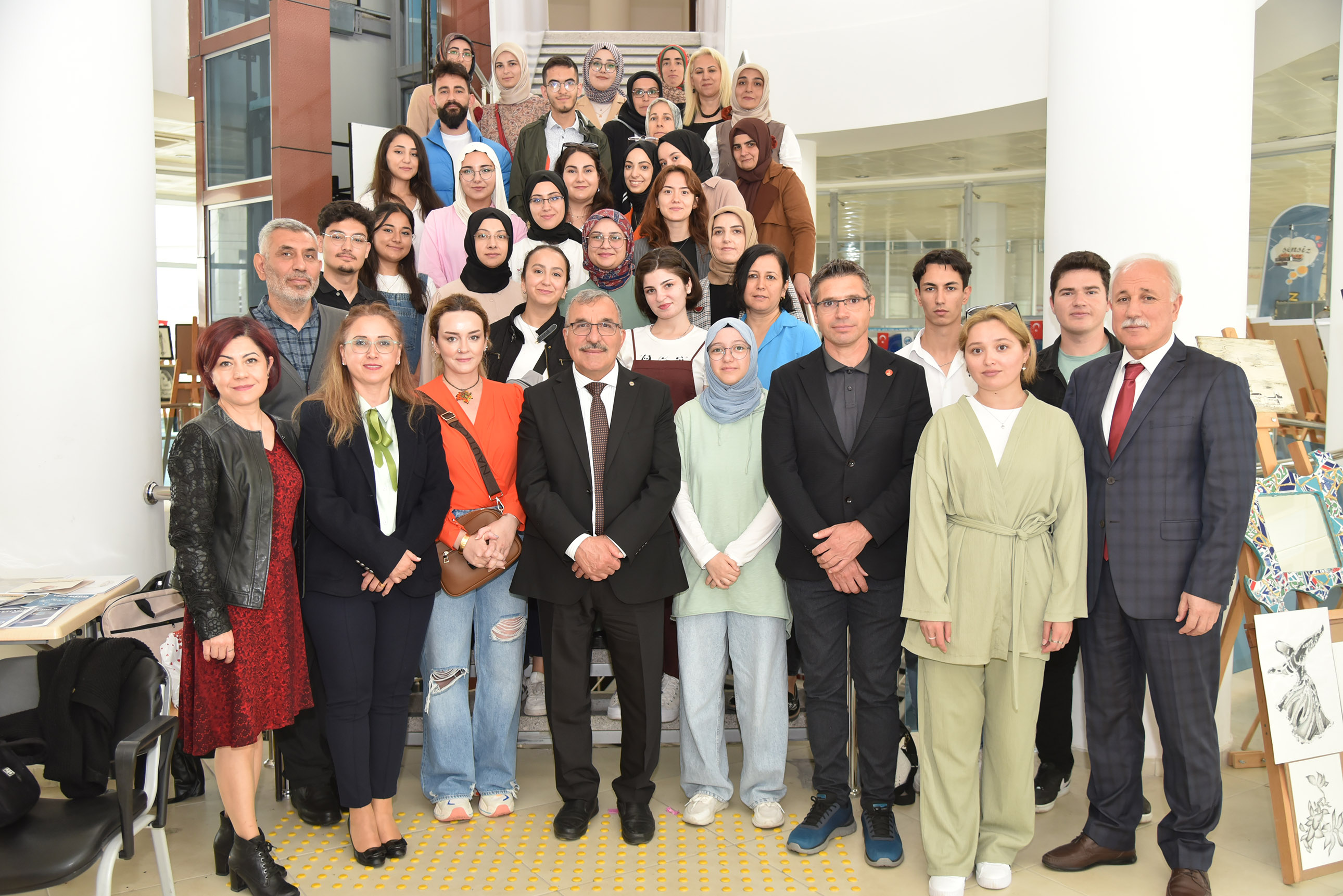 Sağlık, Kültür ve Spor Daire Başkanlığı fuaye alanında açılışı gerçekleştirilen sergiye, Rektör Prof. Dr. Mehmet Gavgalı, Rektör Yardımcıları Prof. Dr. Nevzat Aydın ve Prof. Dr. Serkan Ada, Teknik Bilimler Meslek Yüksekokulu Müdürü Prof. Dr. Hüseyin Atilla Atik, üniversite personeli, öğrenciler ve davetliler katıldı.