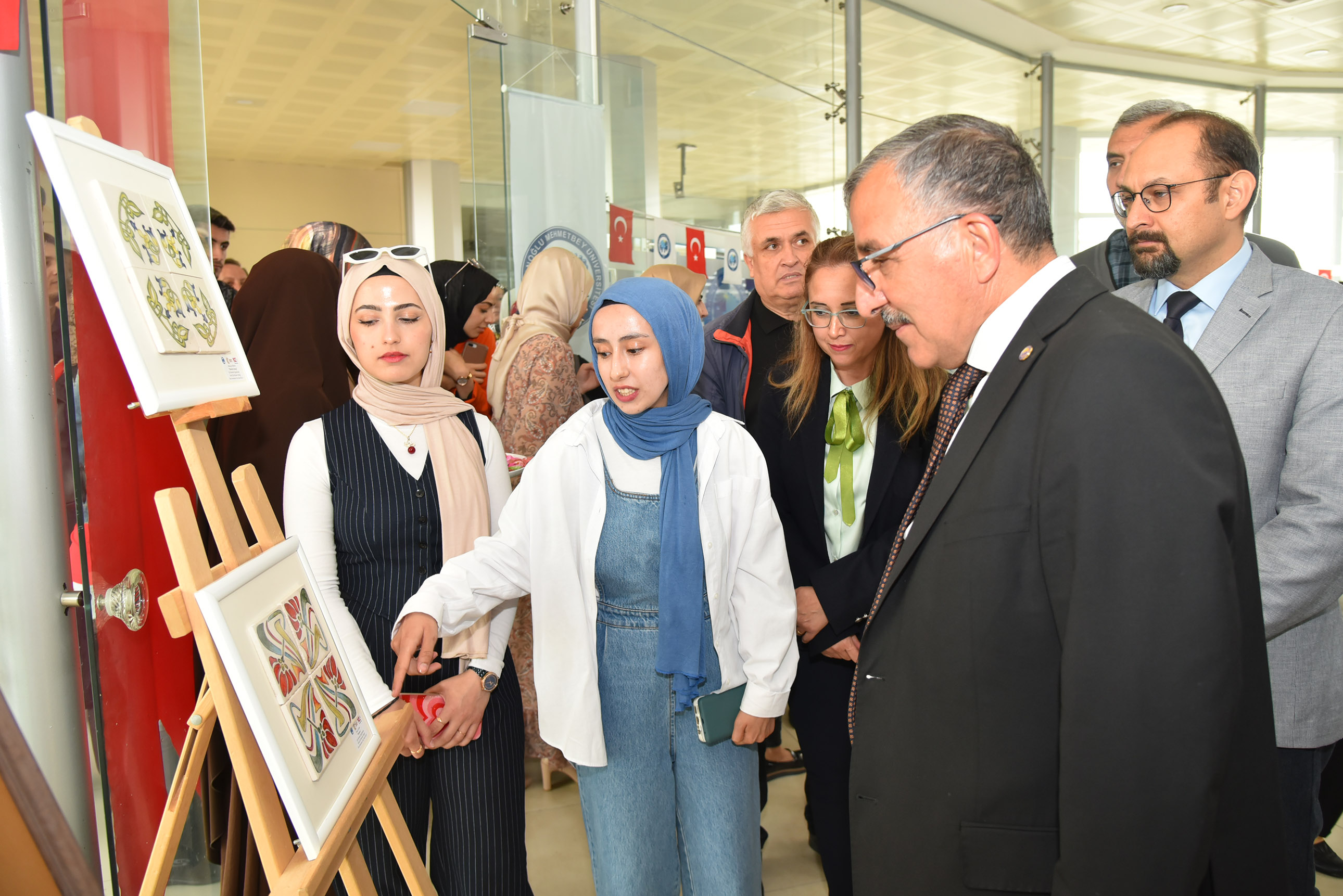 Öğrenciler, TBMYO Öğretim Elemanları Doç. Dr. Seda Dilay, Öğr. Gör. Dr. Tevhide Aydın, Öğr. Gör. Ceyda Gülsever ve Öğr. Gör. Eda Cerit’in akademik danışmanlığında seramik, çini, keçe, tezhip, örücülük, ebru, kat-ı, özgün baskı, ambalaj tasarımı ve illüstrasyon ile tasarladıkları 150’yi aşkın eseri sergiledi.
