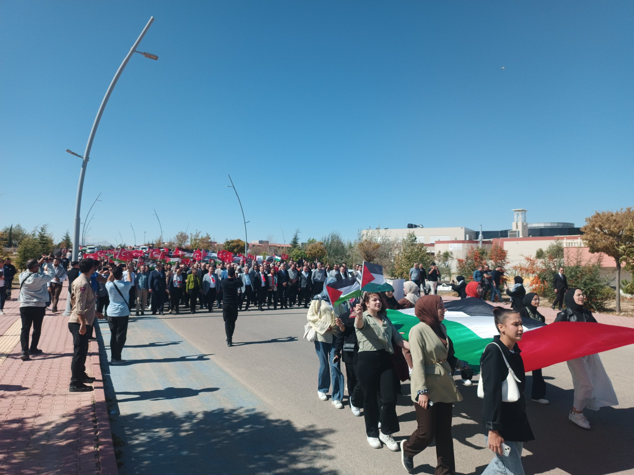 Karamanoğlu Mehmetbey Üniversitesi (KMÜ), Gazze Dayanışmasının ve Özgürlük Mücadelesinin ikinci yılında, Filistin halkına destek amacıyla anlamlı bir etkinliğe ev sahipliği yaptı. “Kampüs’ten Gazze’ye Tek Yürek” temasıyla gerçekleştirilen programda üniversite öğrencileri ve personel, Filistin’e olan dayanışmalarını bir kez daha güçlü şekilde ifade etti.