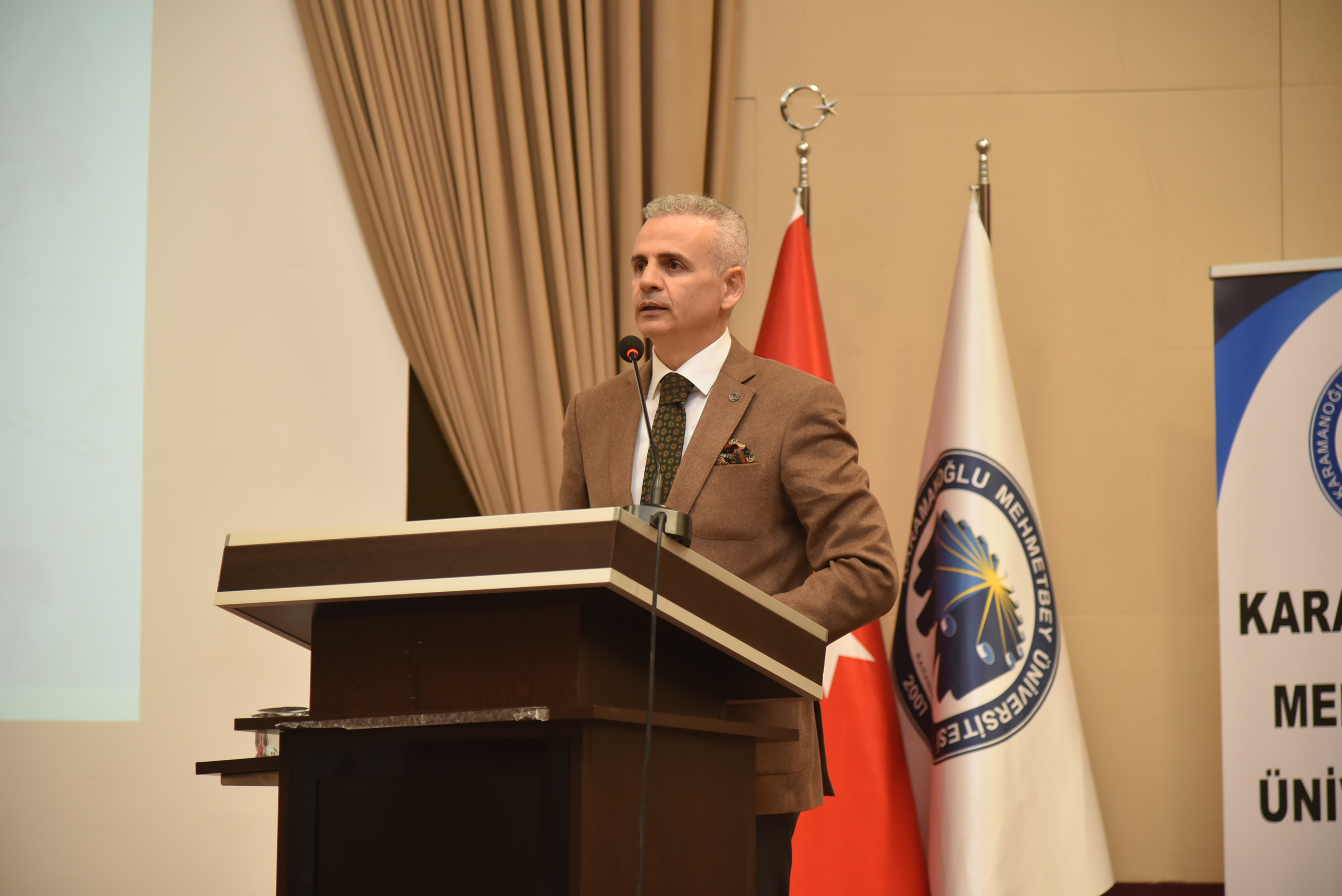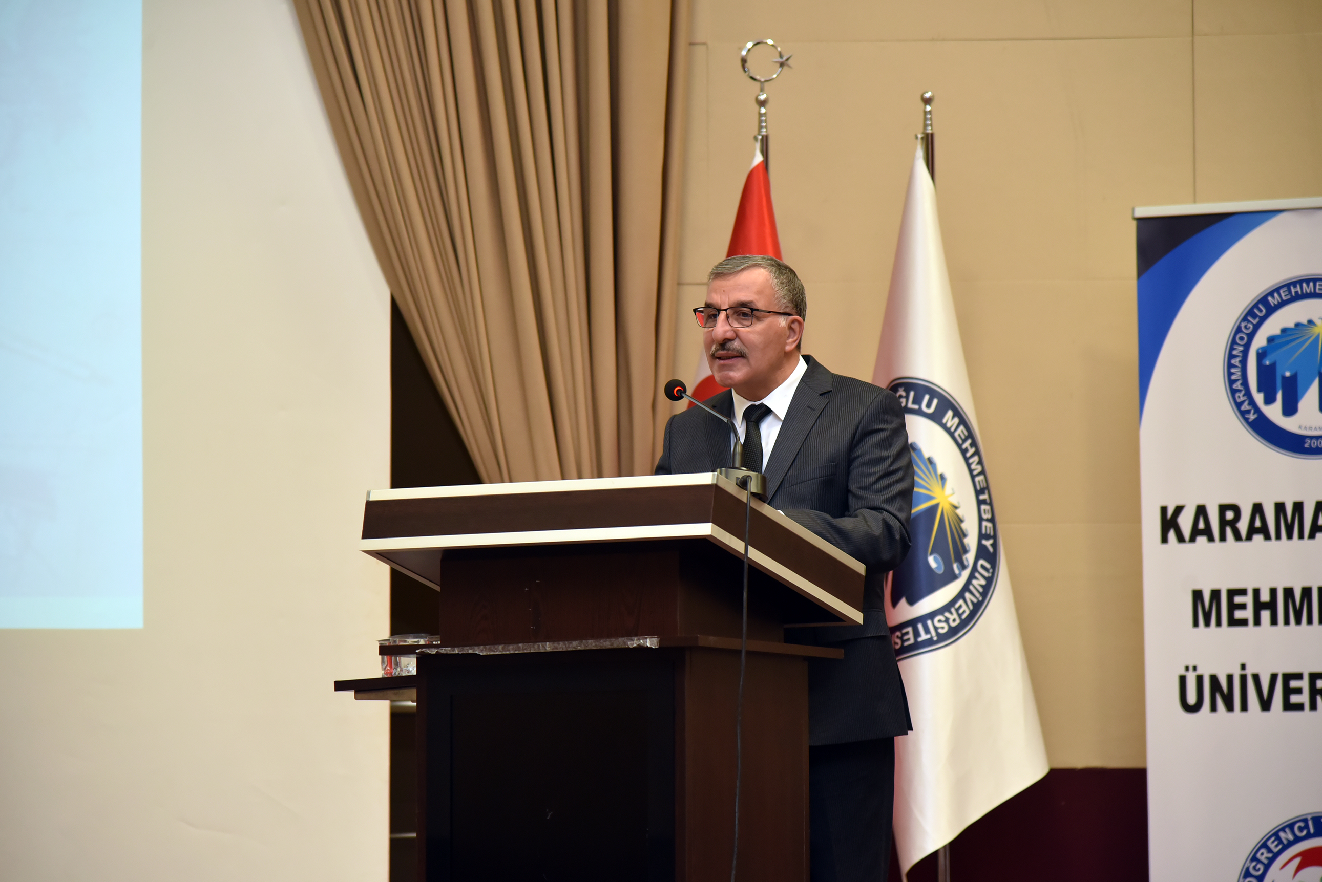 KMÜ Rektörü Prof. Dr. Mehmet Gavgalı, “Karaman, tarih boyunca Anadolu’nun önemli kültür ve medeniyet merkezlerinden biri olmuştur. Özellikle Karamanoğulları Beyliği’nin bu topraklarda kurulmuş olması, Karaman’ın tarihsel kimliğinde çok önemli bir yere sahip. 13. yüzyıldan itibaren Anadolu’da siyasi, ekonomik ve kültürel anlamda önemli bir güç olan Karamanoğulları, Türkçeyi resmi dil ilan ederek Anadolu’da dil birliğinin sağlanmasında önemli bir rol üstlenmiştir. Bu karar, yalnızca Türk dili ve edebiyatı açısından değil, aynı zamanda kültürel ve sosyal yapının şekillenmesi bakımından da derin izler bırakmıştır. Bu miras, Karaman’ın zengin tarihinin ve köklü kültürel kimliğinin temel taşlarından biridir. Bugün bir araya gelmemize vesile olan sempozyum, tarihimizin önemli bir parçasını oluşturan Karamanoğulları Beyliği’nin mirasını, bu kadim toprakların günümüze uzanan kültürel birikimini ve Karaman’ın şekillenmesindeki rolünü derinlemesine ele almak için eşsiz bir fırsat sunmaktadır.” ifadelerini kullandı.