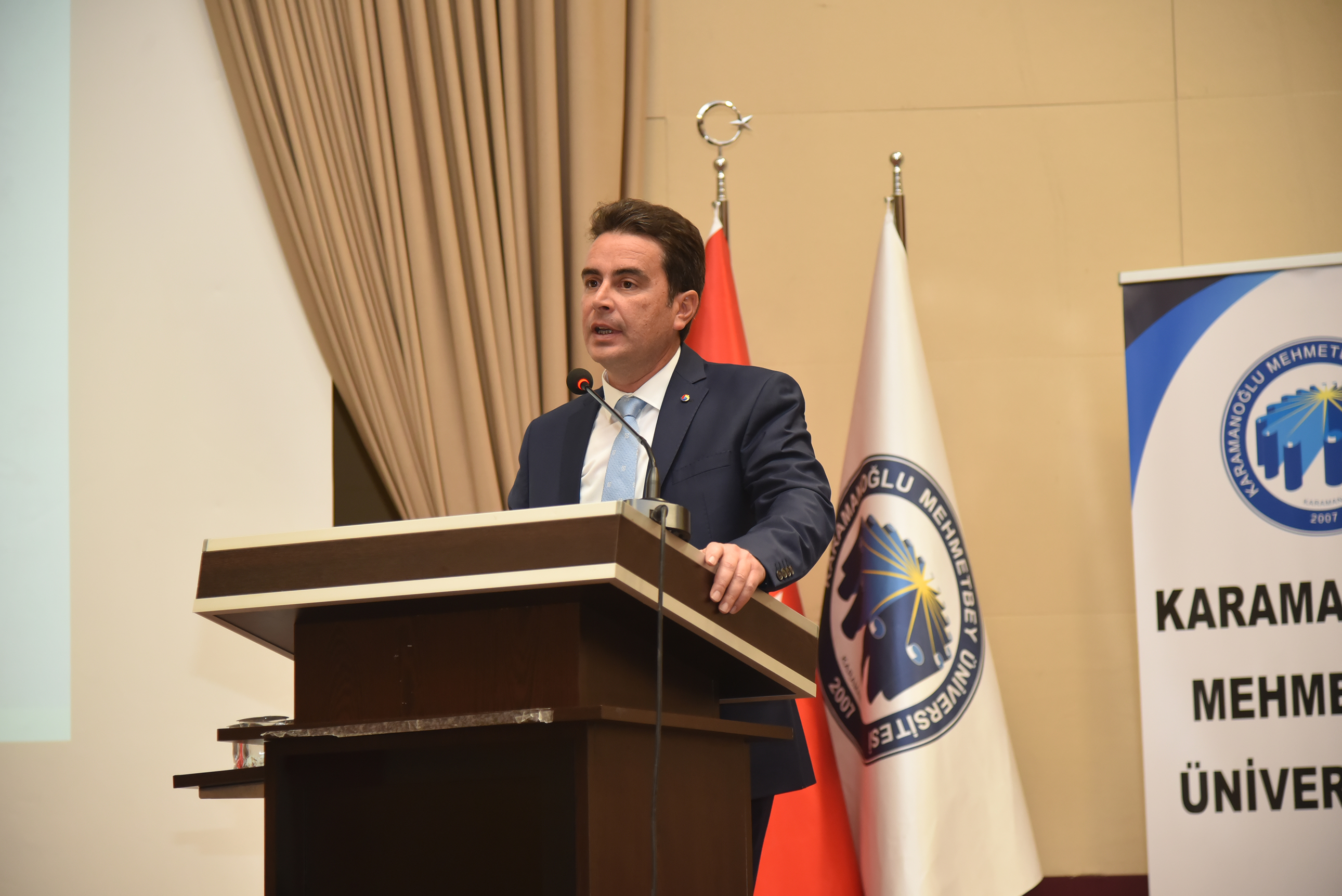 Karaman’ın gelişen sanayisi ve çalışmaları hakkında önemli bilgiler aktaran ve Karaman’ın geleceğin parlayan yıldızı olacağını vurgulayan Karaman Ticaret ve Sanayi Odası (KTSO) Yönetim Kurulu Başkanı Mustafa Gökhan Alkan, şunları söyledi: “Üniversitenin açılışına şahit olmuş birisi olarak üniversitenin şu an geldiği durum bizi çok memnun ediyor. Üniversitenin yapmış olduğu çalışmalar bize güç veriyor. Özel sektörle ilgili birlikte yapılan çalışmalar sektörümüze de bir yön veriyor. Bu vesileyle rektörümüzün nezdinde tüm üniversite camiasına da teşekkürlerimi iletmek isterim.”