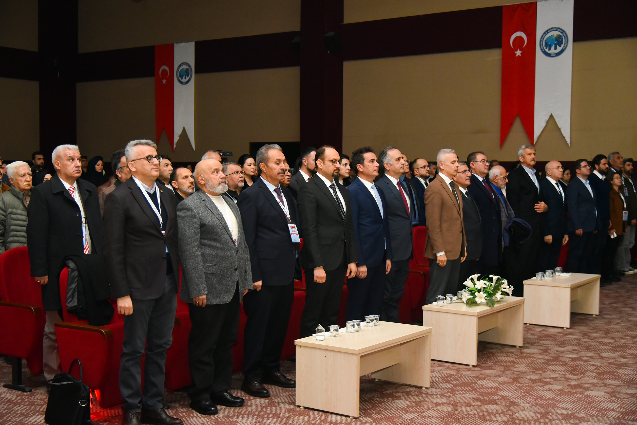 ‘Beylikten Günümüze Karaman’ teması ile düzenlenen sempozyumun açılış törenine Karaman Valisi Mehmet Fatih Çiçekli, Rektör Prof. Dr. Mehmet Gavgalı, Belediye Başkan Yardımcısı Eyüp Hüsamettin Aslan, Rektör Yardımcıları Prof. Dr. Nevzat Aydın, Prof. Dr. Serkan Ada ve Prof. Dr. Mahmut Baykan, il ve üniversite protokolü, bilim insanları, davetliler ve öğrenciler katıldı.
