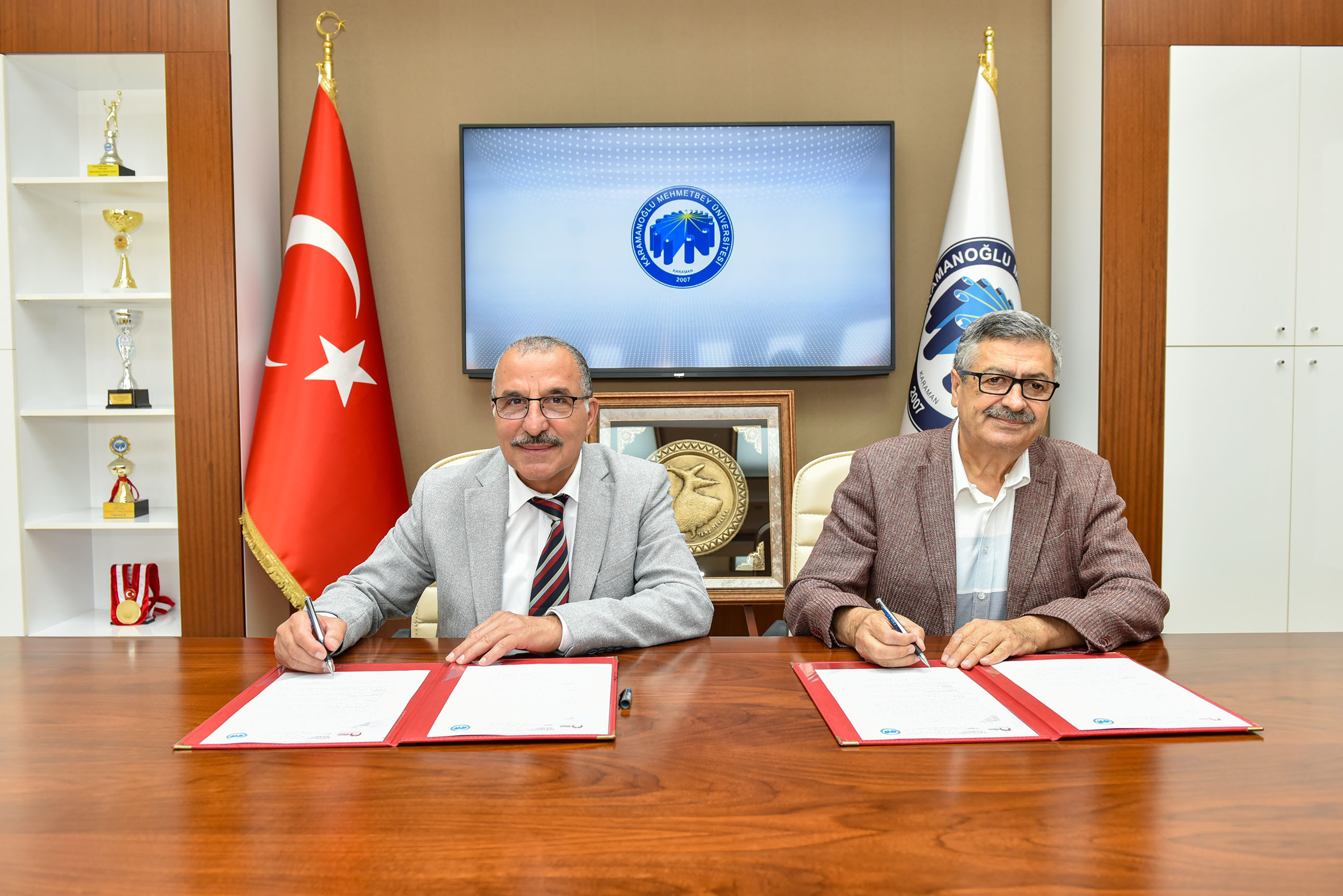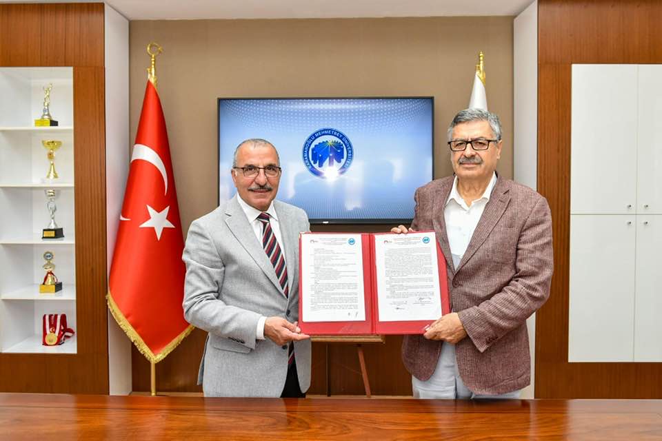KMÜ Rektörlük makamında gerçekleştirilen imza töreninde KMÜ Rektörü Prof. Dr. Mehmet Gavgalı ile Konya Gıda ve Tarım Üniversite Mütevelli Heyeti Başkanı Ali Konukseven yer aldı.