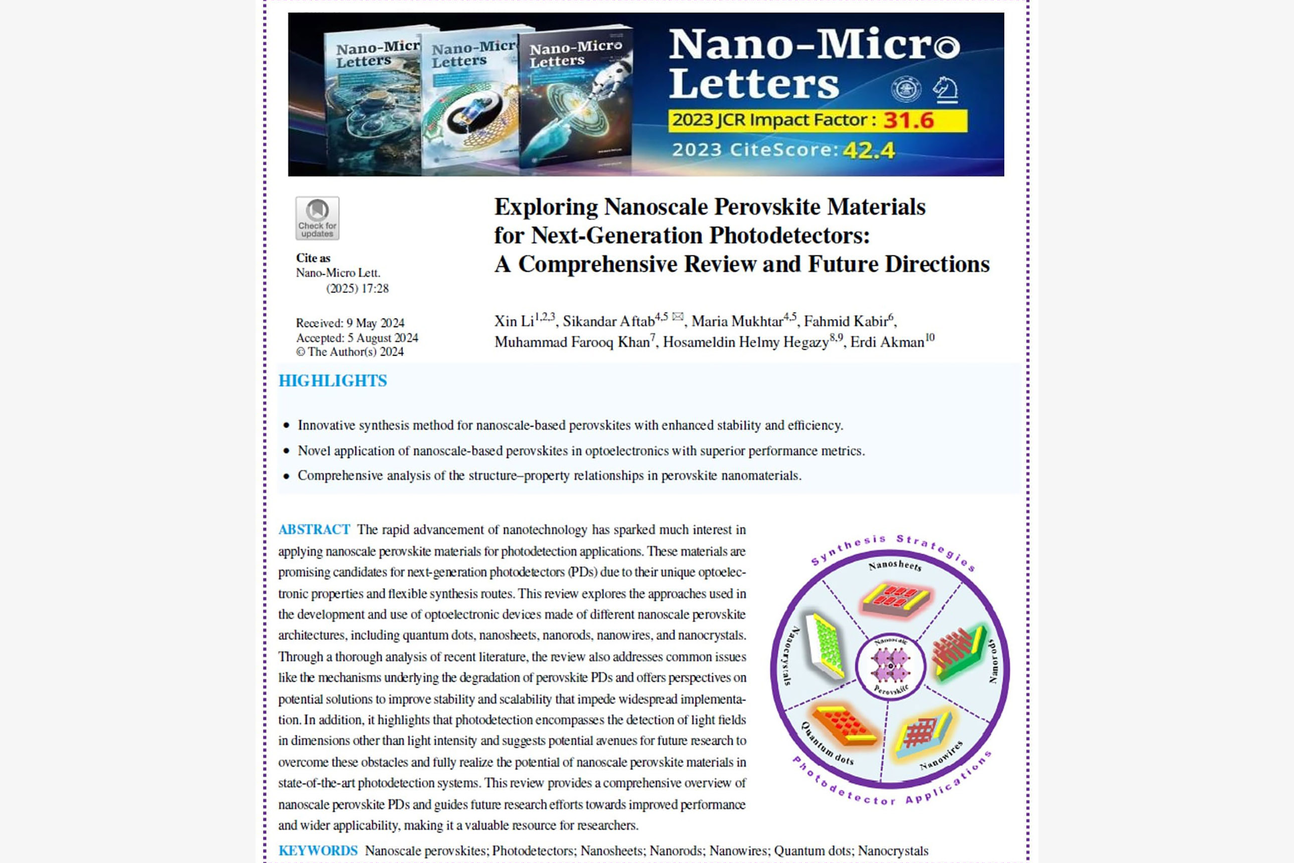 Nanoteknoloji ve nanobilim alanındaki çalışmaları yayınlayan ve 31.6 etki faktörüyle ilgili alandaki en prestijli dergilerden olan ‘Nano-Micro Letters’ dergisinde makalesi yer alan Doç. Dr. Erdi Akman ve meslektaşları, çalışmaları ile nano-boyutlu perovskite malzemelerinin yeni nesil aygıtlardaki kullanımını daha etkin bir biçimde değerlendirerek, fotodiyotlar ve güneş hücrelerinin geliştirilmesine ciddi katkılar sundu.
