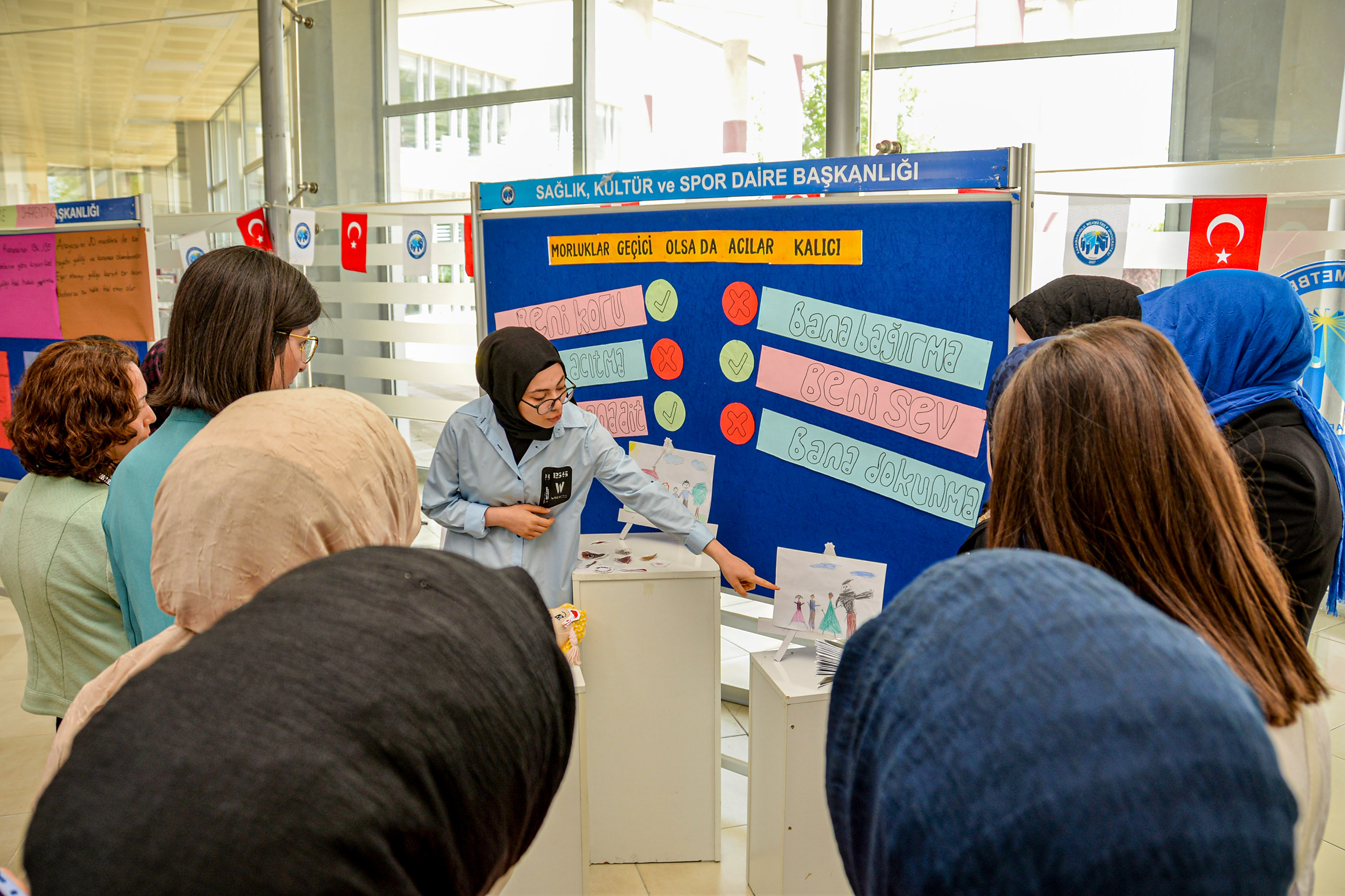 Sağlık Bilimleri Fakültesi Hemşirelik Bölümü son sınıf öğrencileri ve topluluk üyelerinin ‘Çocuk İstismarı ve İhmali’ konusunda hazırlamış olduğu yazı, görsel ve materyaller katılımcıların dikkatine sunuldu.