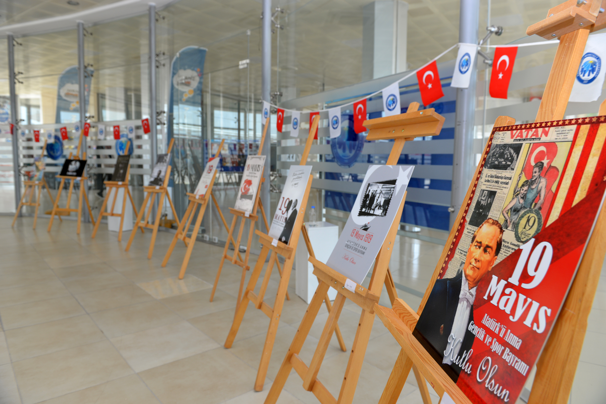 Küratörlüğünü Teknik Bilimler Meslek Yüksekokulu Öğr. Gör Özgül Yiğit’in yaptığı ‘19 Mayıs’ temalı sergide Tasarım Bölümü 1. Sınıf öğrencilerinin hazırlamış olduğu 40’a yakın poster sergilendi.