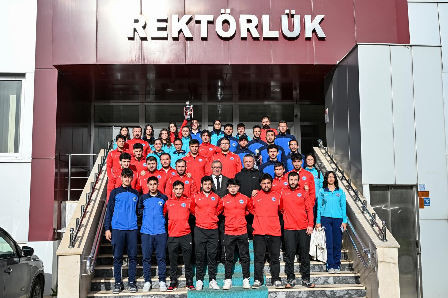 Rektör Gavgali, yaptığı değerlendirmede, “Spor Bilimleri Fakültesi öğrencilerimizin katıldıkları turnuvalarda elde ettikleri başarılar bizleri gururlandırdı. Farklı branşlarda gösterdikleri başarılarla üniversitemizi en iyi şekilde temsil eden sporcularımızı ağırlamaktan memnuniyet duyduk. Bu başarıda emeği geçen tüm akademik kadromuza ve antrenörlerimize teşekkür ediyorum. Sporcularımızı yürekten tebrik ediyor, başarılarının artarak devam etmesini diliyorum” ifadelerini kullandı.