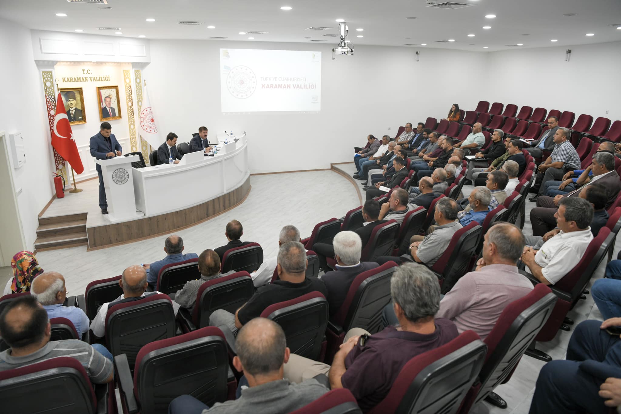Vali H.Engin Sarıibrahim’in katılımıyla Karaman İli Merkez İlçesi Köylerine Hizmet Götürme Birliği Başkanlığı Meclisi Eylül Ayı Olağan Meclis Toplantısı gerçekleştirildi.Vali Yardımcısı Mehmet Yasin Erkan, İl Özel İdaresi Genel Sekreteri Ali Yener Terlemez, İdare ve Denetim Müdürü Abdullah Şahiner ve İl Genel Meclis Üyeleri’nin de katıldığı toplantıda Vali H.Engin Sarıibrahim, toplantıya katılan köy muhtarlarının ihtiyaç ve taleplerini de dinledi.