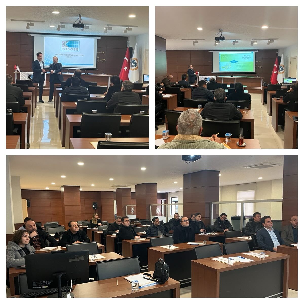 Karaman Ticaret ve Sanayi Odası Toplantı Salonu’nda düzenlenen toplantıya Karaman KOSGEB İl Müdürü Mevlüt Tavşan, Odamız Meclis Başkanı Ahmet Çelik, Yönetim Kurulu Başkanı Mustafa Gökhan Alkan, Yönetim Kurulu Üyeleri, Meclis Üyeleri ile Üye Firmalarımız katılım sağladı.Toplantının açılış konuşmasını yapan Karaman Ticaret ve Sanayi Odası Yönetim Kurulu Başkanı Mustafa Gökhan Alkan; “Dünya Bankası’nın desteğiyle, Sanayi ve Teknoloji Bakanlığı, TÜBİTAK ve KOSGEB tarafından yürütülen 450 milyon dolarlık Türkiye Yeşil Sanayi Projesi desteğini çok kıymetli bulduklarını ifade ederek; “Bizim üyelerimizin büyük çoğunluğunu KOBİ’ler oluşturuyor. Dolayısıyla projenin hem KOSGEB hem de TÜBİTAK ayağındaki destekler için potansiyel yararlanıcı bir kitleye sahibiz. Bu süreçte üyelerimize Oda olarak elimizden gelen desteği vermeye hazırız” diye konuştu.Haberin devamı için: