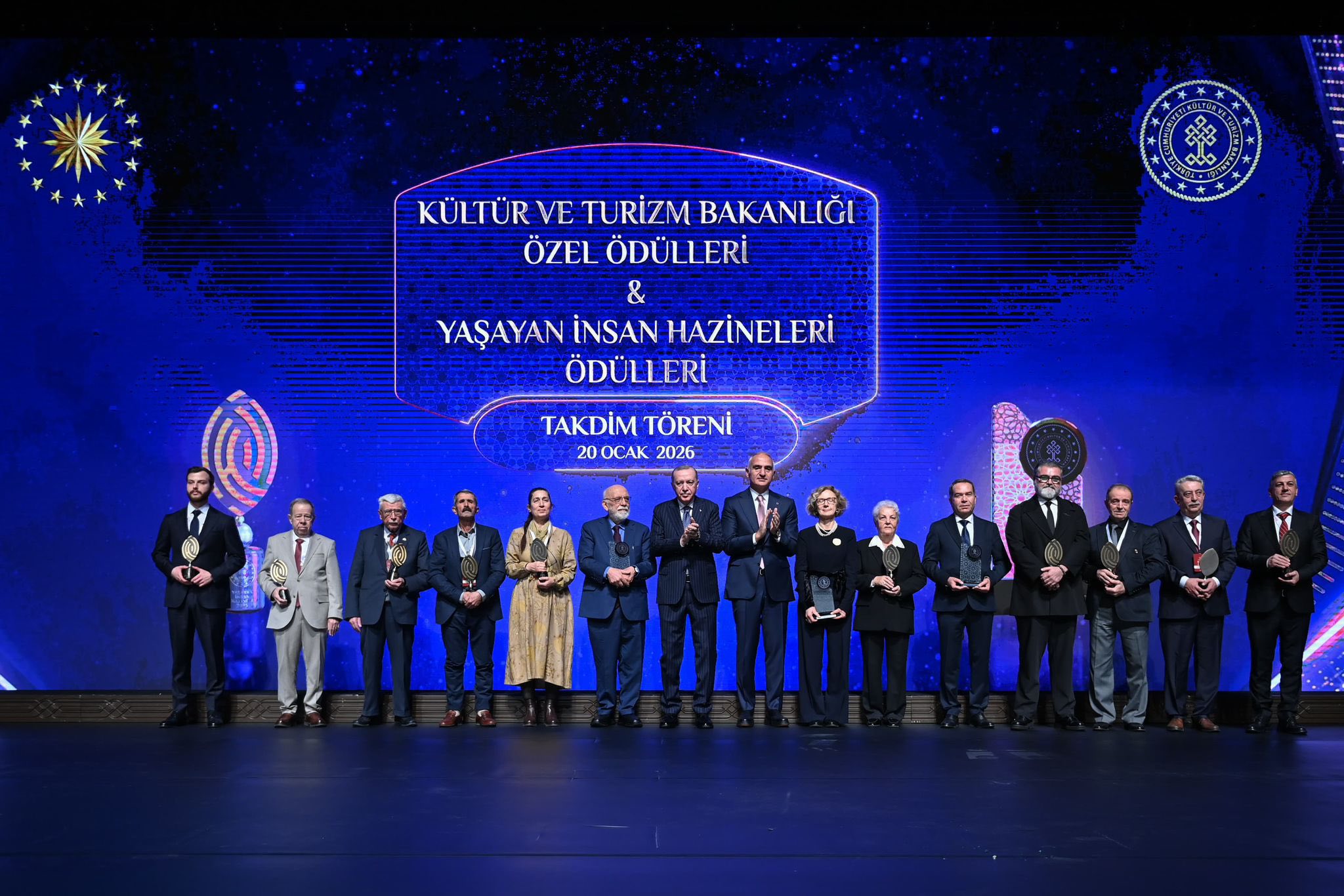Cumhurbaşkanı Recep Tayyip Erdoğan’ın ev sahipliğinde gerçekleştirilen Kültür ve Turizm Bakanlığı Özel Ödülleri ile Yaşayan İnsan Hazineleri Ödülleri Töreni, Türkiye’nin kültürel mirasına değer katan isimleri bir araya getirdi. Kültür ve sanat alanında uzun yıllar emek veren usta ve sanatçılar, anlamlı törende ödüllerini aldı.