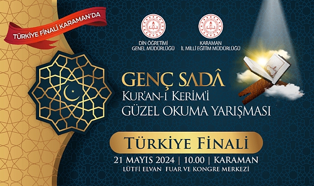 Milli Eğitim Bakanlığı Din Öğretimi Genel Müdürlüğü tarafından düzenlenen Genç Sadâ Kuran-ı Kerim'i Güzel Okuma Yarışmasının Türkiye Finali Karaman İl Millî Eğitim Müdürlüğünün ev sahipliğinde gerçekleştirecek.
