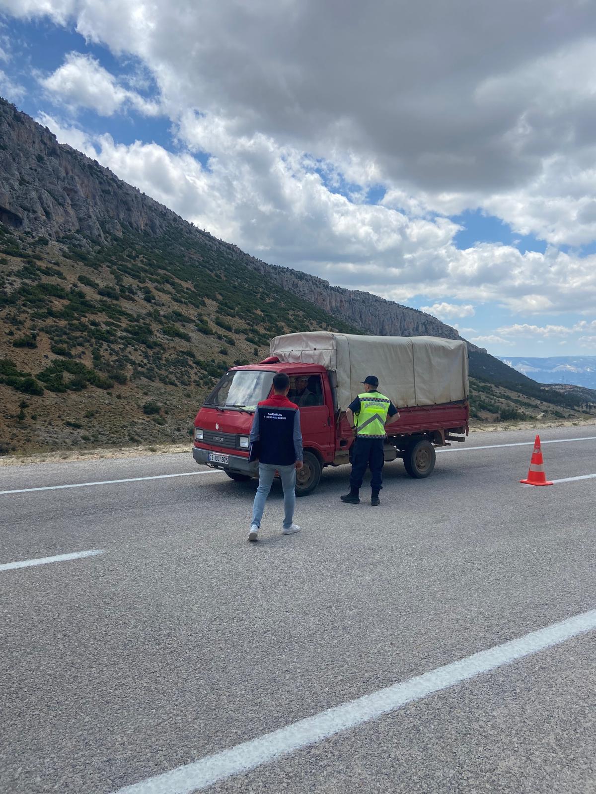 Yaklaşan Kurban Bayramı öncesinde, Ermenek ve Başyayla ilçelerinde canlı hayvan ve hayvansal ürünlerin sevkiyatlarına yönelik yol kontrolleri aralıksız sürdürülüyor.