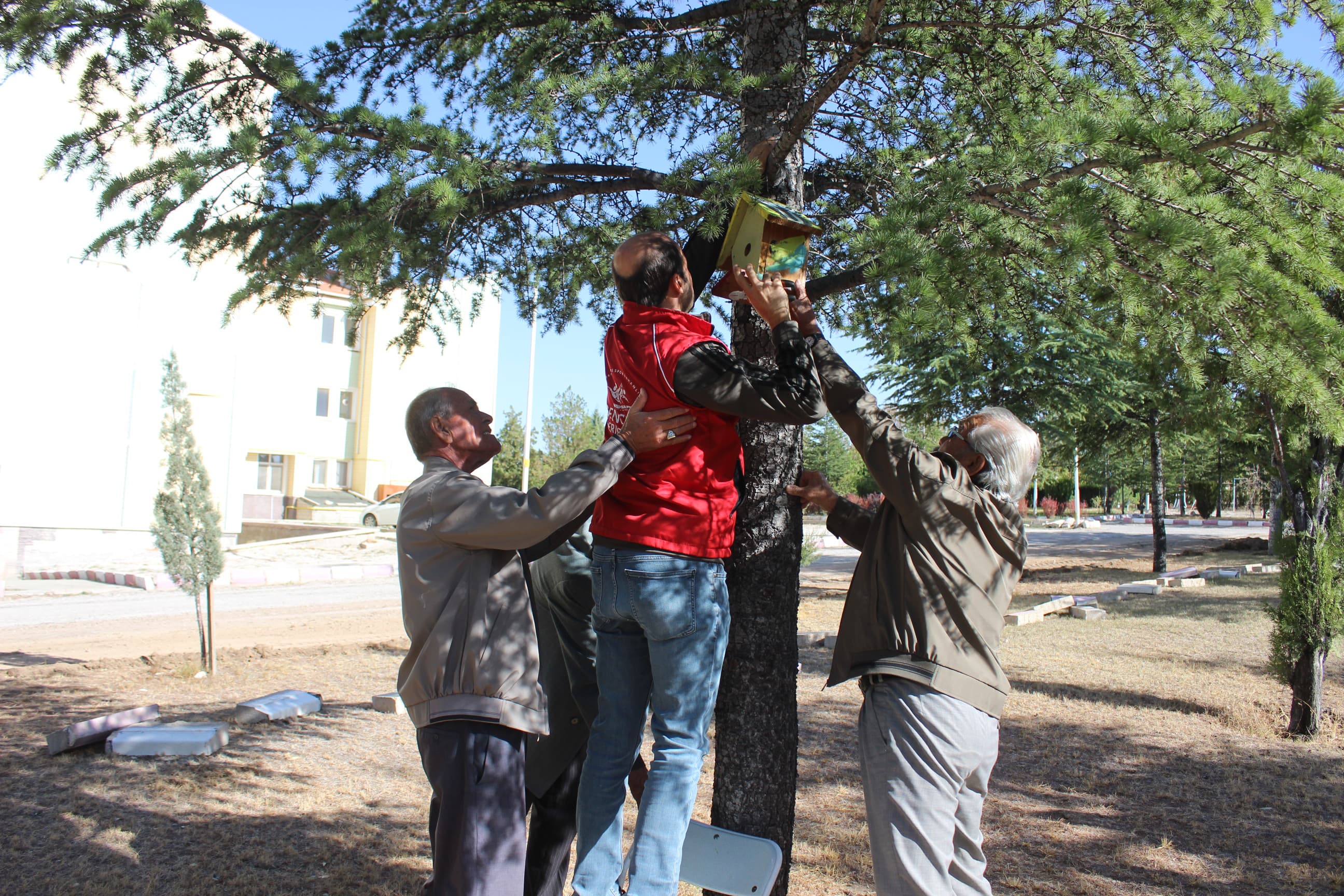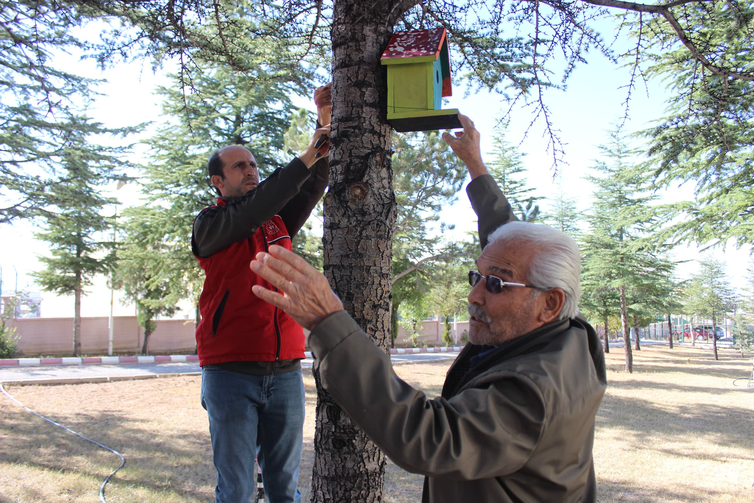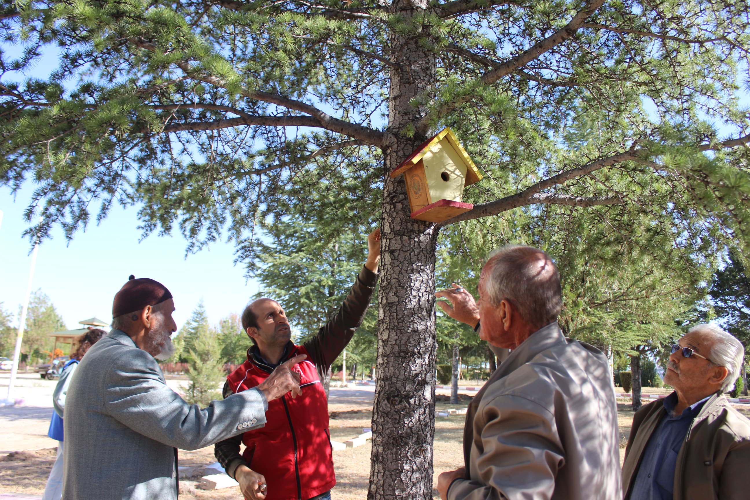 KUŞ EVLERİ HUZUREVİ SAKİNLERİYLE BİRLİKTE AĞAÇLARA YERLEŞTİRİLDİ