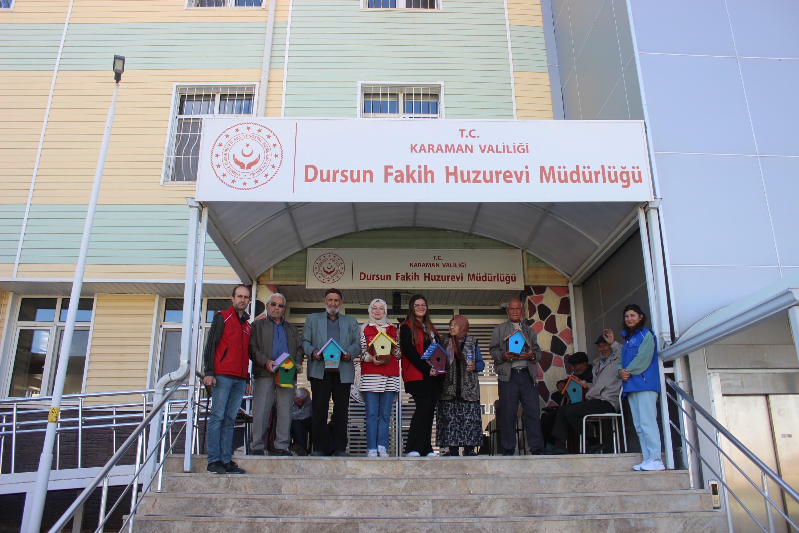 Karaman’da Gençlik ve Spor İl Müdürlüğü Gençlik Merkezi tarafından düzenlenen “Kuşaktan Kuşağa Öğrenme” projesi kapsamında hazırlanan kuş evleri, huzurevi sakinleriyle birlikte ağaçlara asıldı.