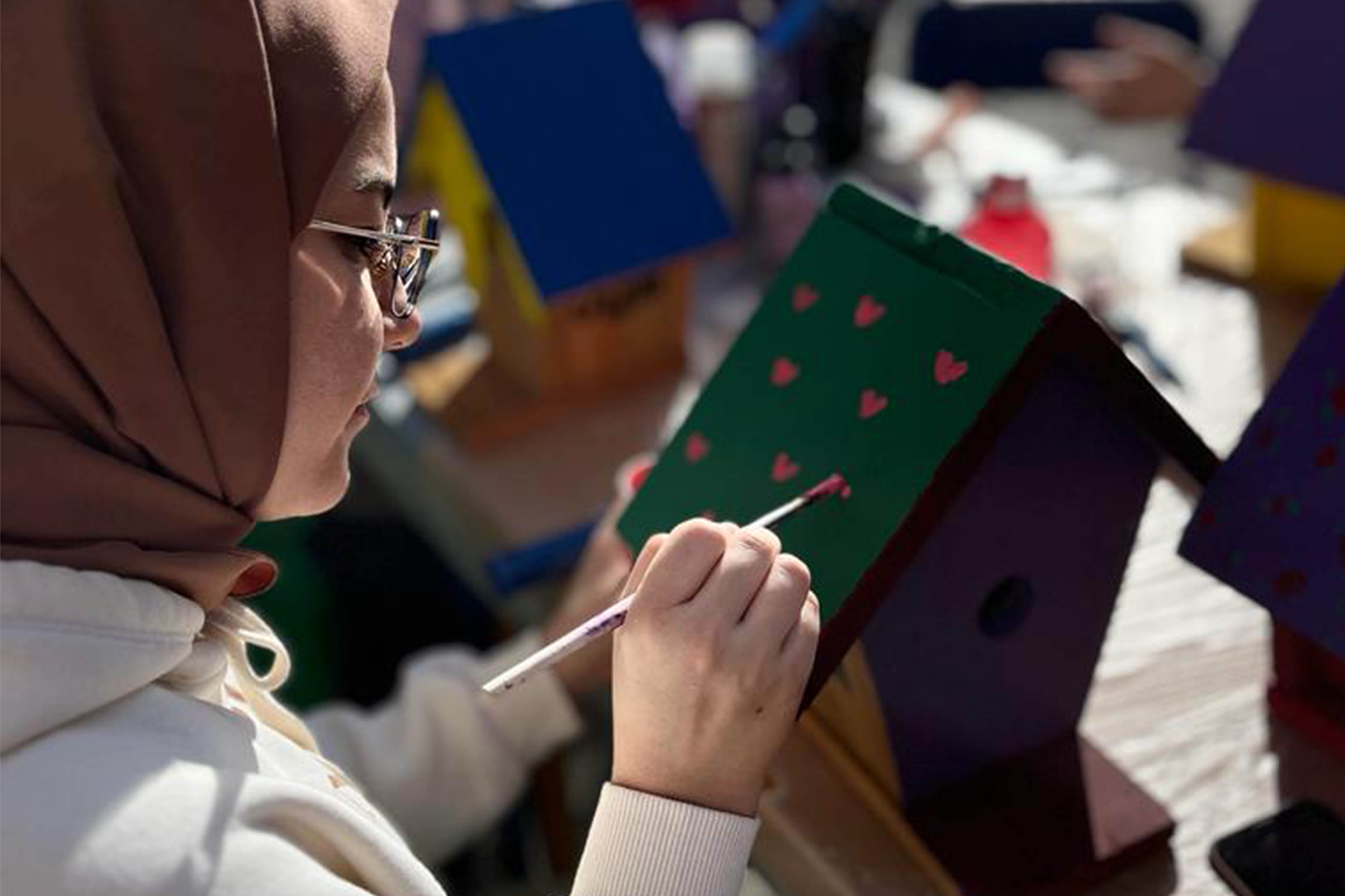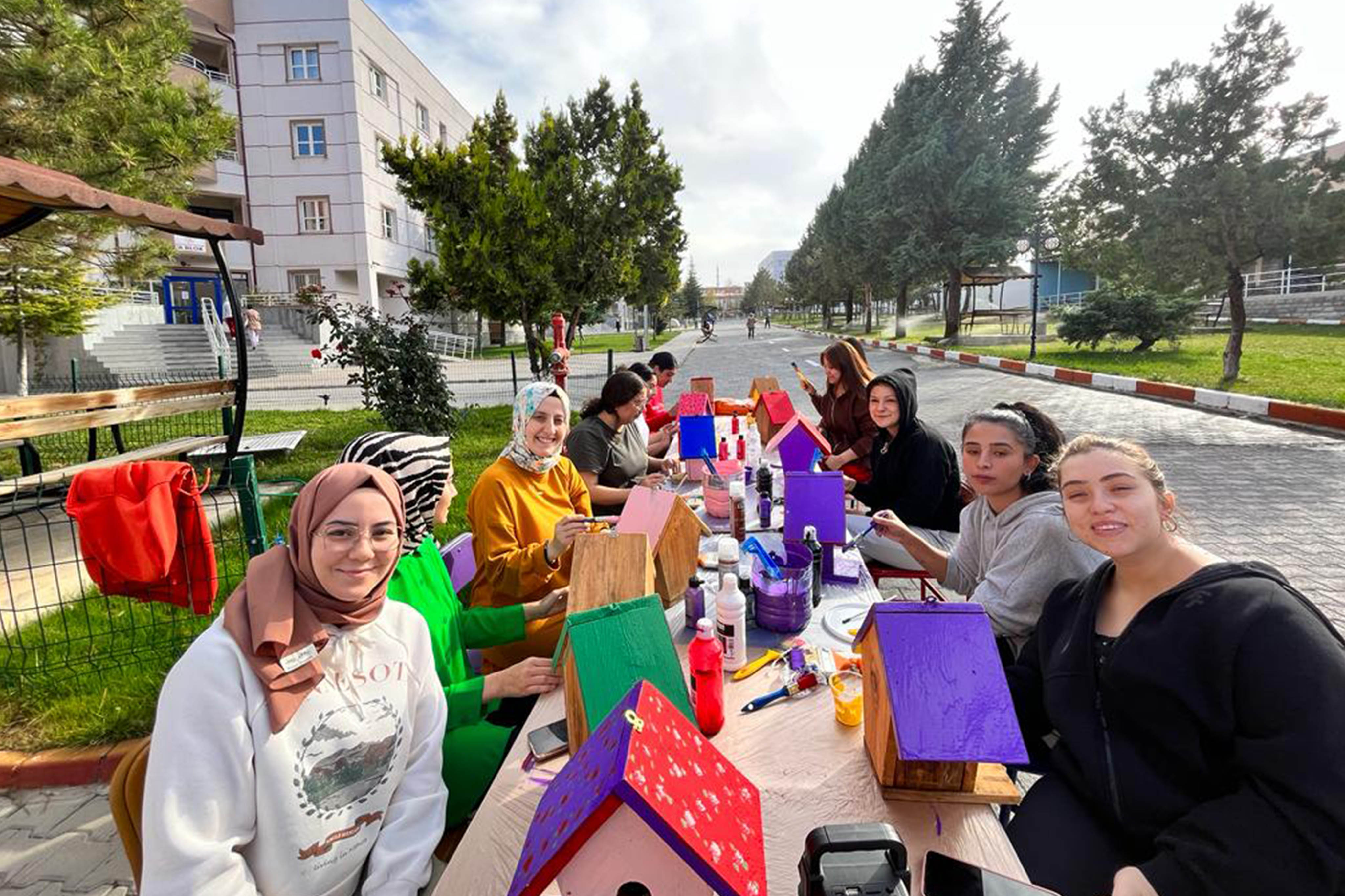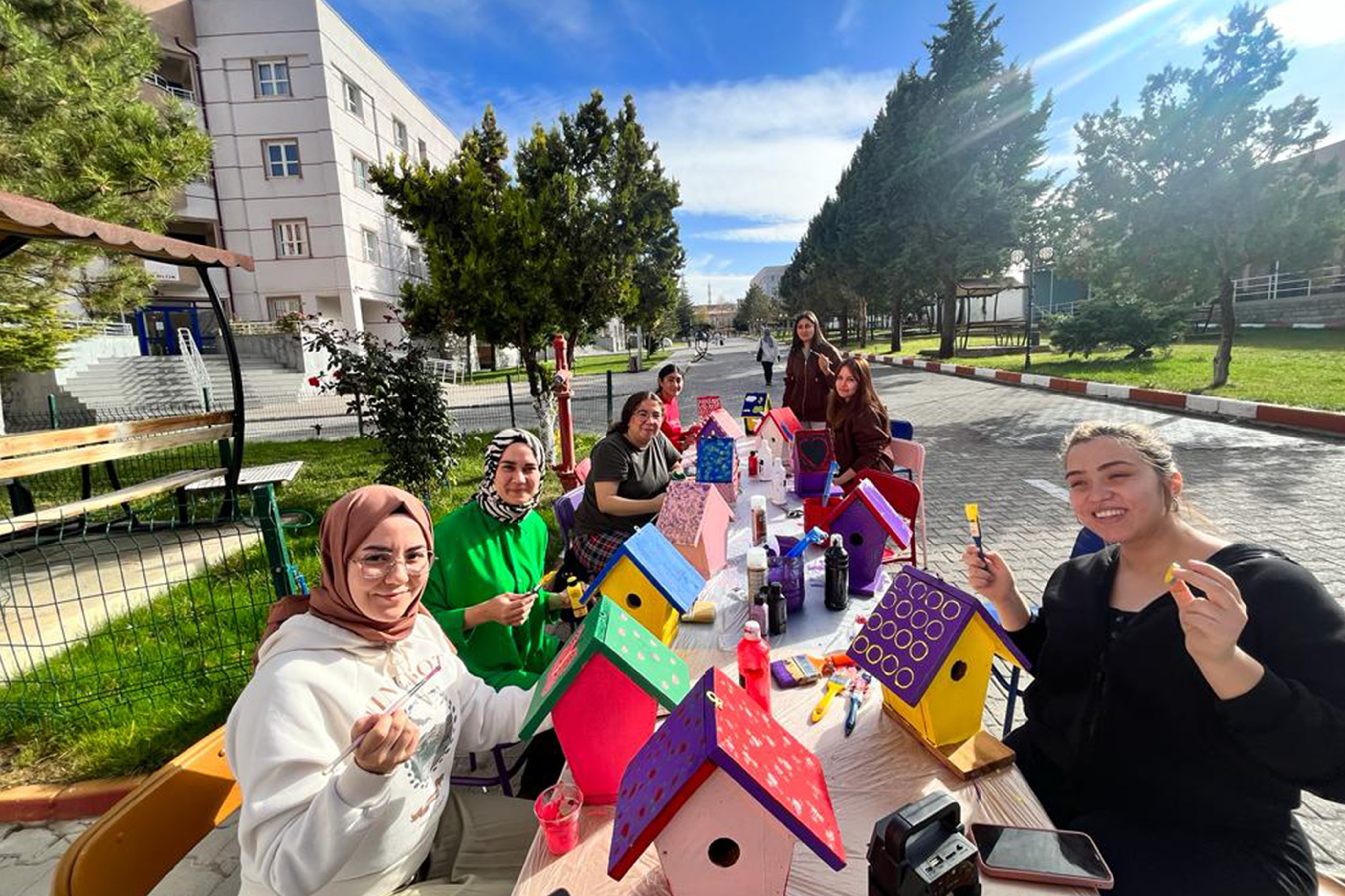 GSB Karaman Kız Yurdu’nda barınan üniversite öğrencileri, kendi çabalarıyla yaptıkları kuş evlerini rengarenk boyayarak kış öncesi yurt bahçesinde yer alan ağaçlara astılar. Kuşların barınması için kendi elleri ile boyamış oldukları 25 tane kuş evini ağaçlara asan gönüllü gençler, büyük bir mutluluk yaşadı.