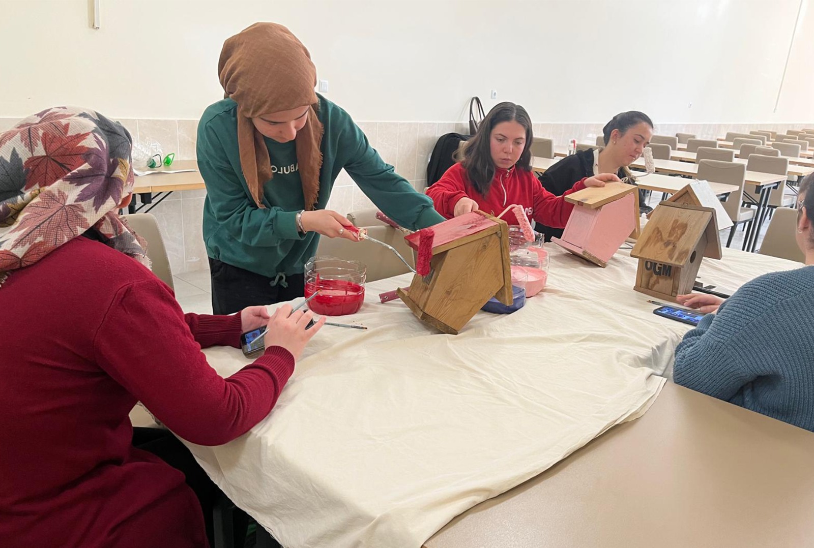 Nefise Sultan Kız Yurdu’nda düzenlenen etkinlik, öğrencilerin doğa sevgisini pekiştirmek ve çevreye duyarlı bir nesil yetiştirmek amacıyla gerçekleştirildi. Öğrenciler, çeşitli renklerle boyadıkları kuş evlerini büyük bir sevgi ve özenle tamamladı. Hazırlanan yuvalar, ilerleyen günlerde doğaya bırakılacak ve kuşların barınması için kullanılacak.