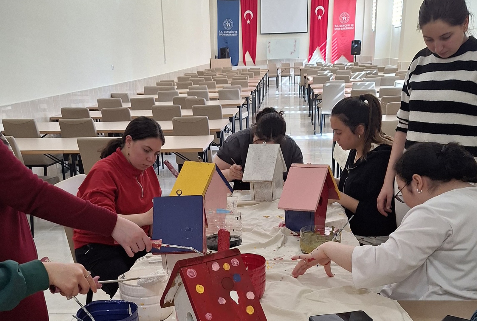 Karaman Gençlik ve Spor İl Müdürlüğüne bağlı Nefise Sultan Kız Yurdu, öğrencilerin katılımıyla kuş evi boyama etkinliği düzenledi. Etkinlikte, öğrenciler minik kuşlar için rengârenk yuvalar hazırlayarak doğaya katkıda bulundu.