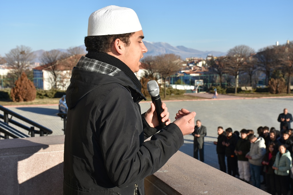 Karaman Valisi H. Engin Sarıibrahim, İl Millî Eğitim Müdürü Mehmet Çalışkan ve protokol üyeleri Abdullah Tayyar Anadolu Lisesindeki anma törenine katılarak öğretmen ve öğrencilerle birlikte depremde yaşamını yitiren vatandaşlarımız için 1 dakikalık saygı duruşunda bulundu.