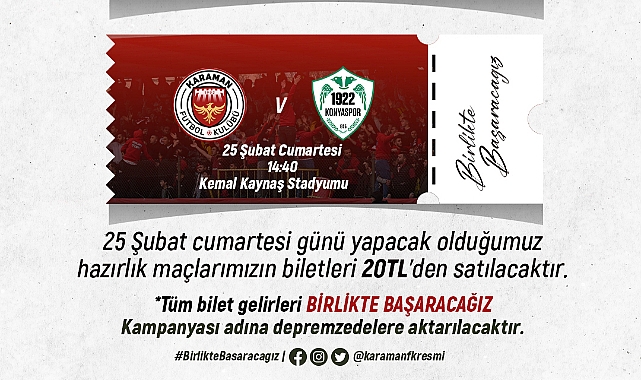 Müsabakaların tribün gelirlerinin tamamı depremzede vatandaşlarımıza bağışlanacak. Depremzede vatandaşlarımızın yaralarını bir nebze de olsa sarabilmek adına taraftarlarımızdan hazırlık müsabakalarımıza büyük ilgi göstermesini temenni ediyoruz.