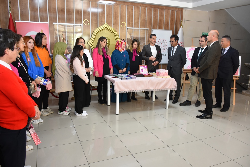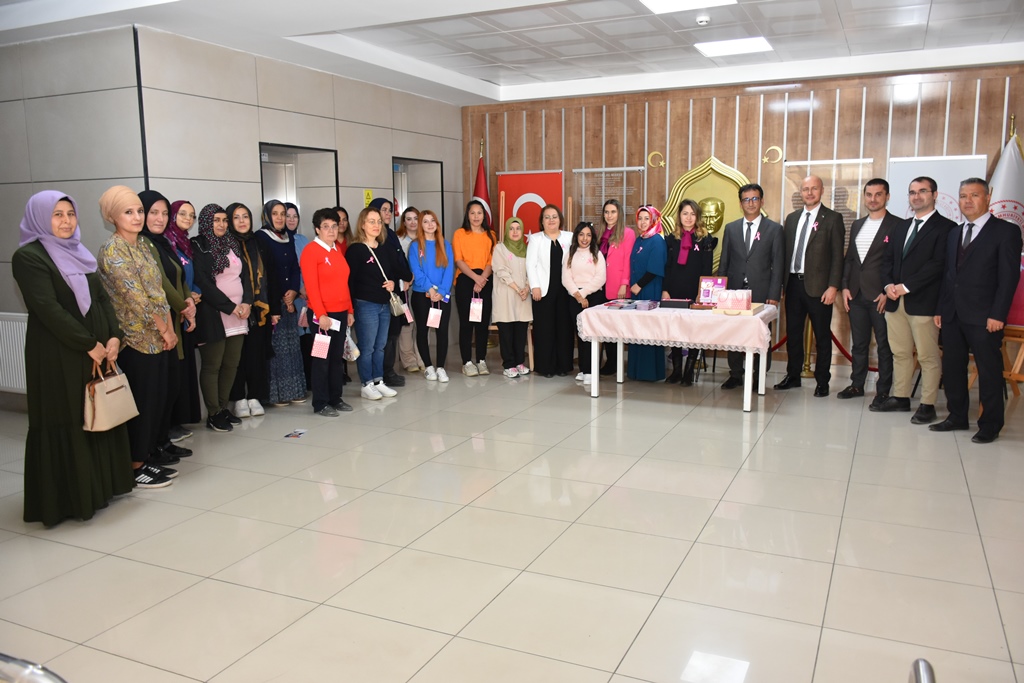 'Meme Kanseri Farkındalık Ayı' dolayısıyla İl Millî Eğitim Müdürlüğünde düzenlenen etkinliğe İl Millî Eğitim Müdürü Mehmet Çalışkan, Halk Sağlığı Hizmetleri Başkanı Dr. Aykut Emre Yıldırım, Halk Sağlığı Hizmetleri Başkan Yardımcısı Uzman Dr. Enes Çakmakkaya, Halk Sağlığı Hizmetleri Kanser Birim Sorumlusu Uzman Dr. Ömer Acat, Kanser Birimi Ebe Alime Özyer Genç, Ebe Müberra Bozoğlu, Hareketli Hayat Birimi Diyetisyen Nur Gören ile İl Millî Eğitim Müdürlüğü hizmet binasındaki personel katıldı.