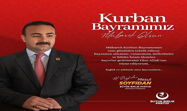 Büyük Birlik Partisi Karaman İl Başkanı Mesut Soyfidan kurban bayramı münasebetiyle tebrik mesajı yayımladı.