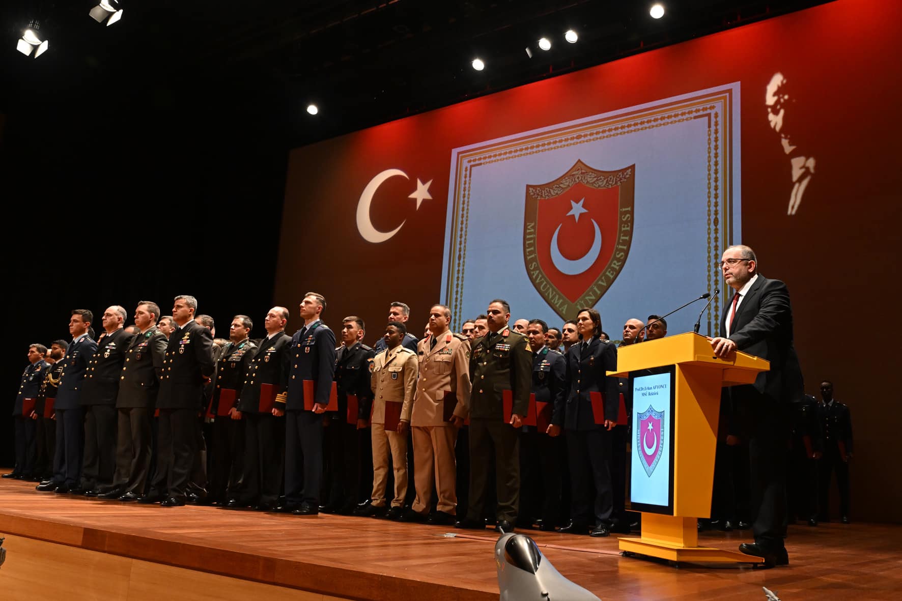 Milli Savunma Üniversitesi Mezuniyet Töreni GerçekleştirildiMilli Savunma Üniversitesi 13'üncü Dönem Müşterek Komuta ve Kurmay Eğitimi ile 15'inci Dönem Karargâh Subaylığı Eğitimini tamamlayan kursiyer subaylara, düzenlenen mezuniyet töreniyle diplomaları verildi.Törene; Milli Savunma Bakan Yardımcısı Sn. Musa Heybet, Rektörümüz Prof. Dr. Erhan Afyoncu, 3'üncü Kolordu Komutanı Korgeneral Sezai Öztürk, Kuzey Deniz Saha Komutanı Koramiral Mustafa Kaya, MSÜ Yönetim Kademesi ve diğer davetliler katıldı.