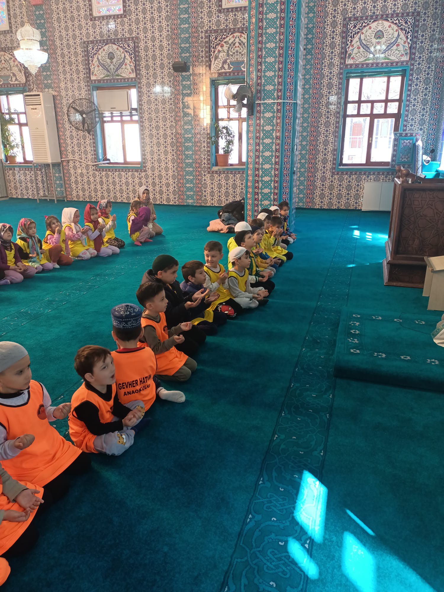 Gevher Hatun Anaokulu öğrencileri, öğretmenleri eşliğinde Kır Mahalle Büyük Camii’ni ziyaret etti.
