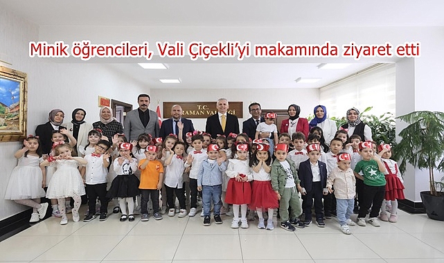 Minik öğrencileri, Vali Çiçekli’yi makamında ziyaret etti.23 Nisan Ulusal Egemenlik ve Çocuk Bayramı etkinlikleri kapsamında, Karamanoğlu Mehmetbey Üniversitesi Uygulama Anaokulu ile Gevher Hatun Anaokulu’nun minik öğrencileri, Vali Mehmet Fatih Çiçekli’yi makamında ziyaret etti.Renkli kostümleri, neşeli tavırları ve içten gülümsemeleriyle Valilik Makamını adeta bir bayram yerine çeviren öğrencilerle yakından ilgilenen Vali Çiçekli, kapıda karşıladığı ve keyifli sohbetler gerçekleştirdiği öğrencilerin sordukları soruları yanıtladı. Keyifli anların ve gülümseten diyalogların yaşandığı ziyaret, günün anısına çekilen hatıra fotoğraflarıyla sona erdi.