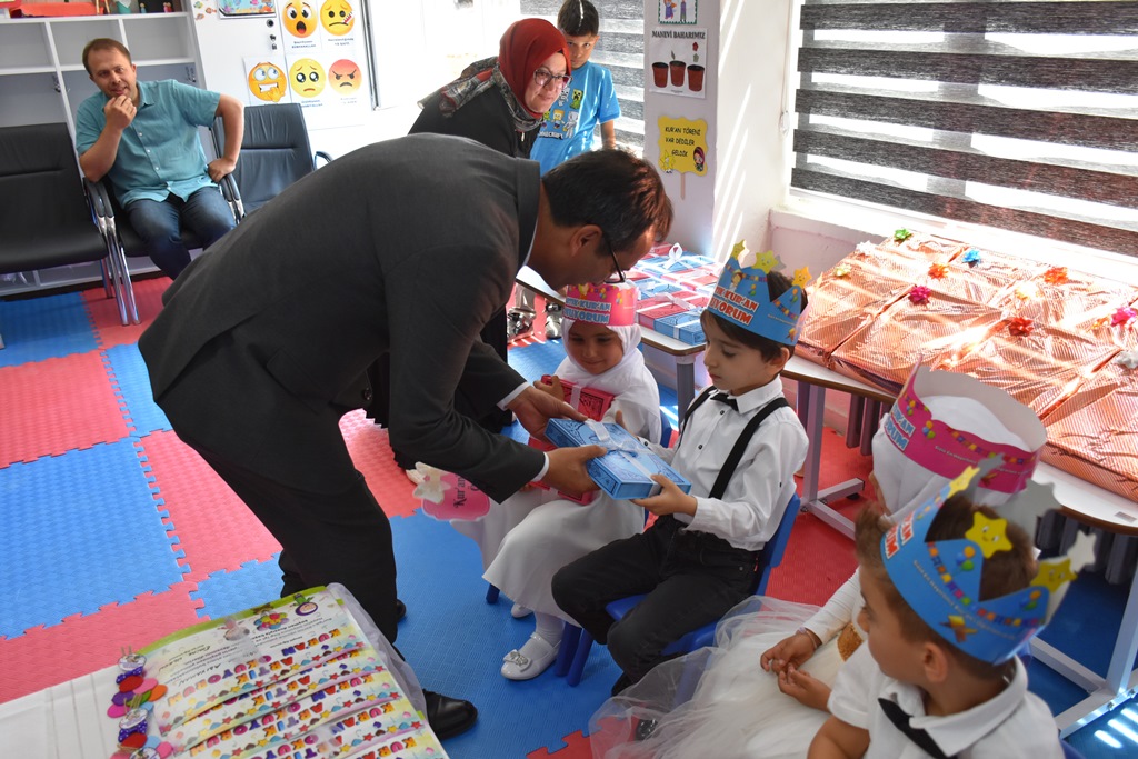 Konuşmaların ardından öğrenciler Kur’an-ı Kerim’e geçmenin sevincini pasta keserek kutladı. İl Millî Eğitim Müdürü Mehmet Çalışkan ve İl Millî Eğitim Müdür Yardımcısı İsmail Kılınç, öğrencilere belge ve çeşitli hediyeler verdi.