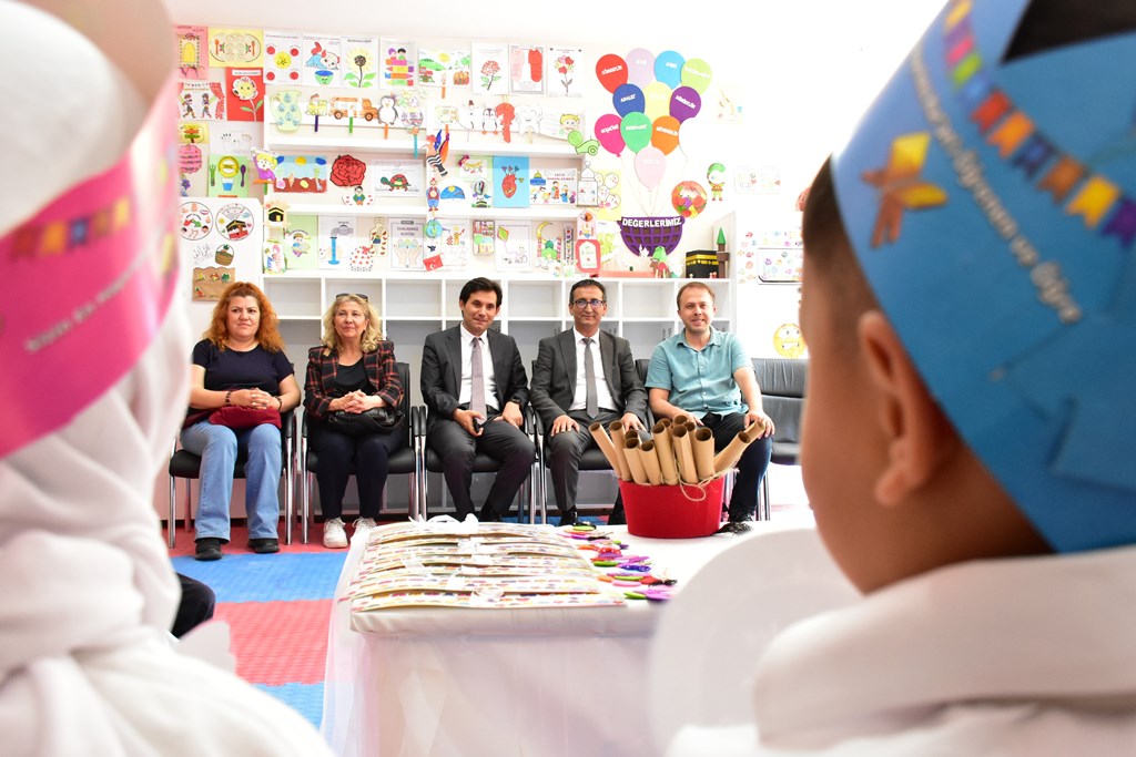 Törende konuşan İl Millî Eğitim Müdürü Mehmet Çalışkan, din eğitiminin bireyin manevi gelişimindeki önemine dikkat çekerek, “Bugün burada dünya hayatımız kadar ebedi hayatımızda da son derece önem arz eden Kur’an ahlakının bize nakış olmasına vesile olacak bir Kur’an-ı Kerim geçiş töreni vesilesiyle bir aradayız. Kur’an-ı Kerim öğrenen sevgili çocuklarımızın gözlerinden öpüyor, onlara bu yolda rehberlik eden kıymetli öğretmenimize teşekkür ediyorum. Aynı zamanda bu güzel eğitimin temelini atan anne ve babalara da Allah razı olsun diyorum.” ifadelerini kullandı.