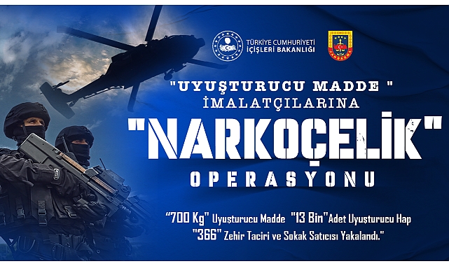 - Hakkari, İstanbul, Sakarya, Van, Bingöl, Aydın, Tekirdağ, Çanakkale, Hatay, Afyonkarahisar, Şanlıurfa, Kahramanmaraş ve Kayseri olmak üzere 20 ilde "NARKOÇELİK-16” operasyonları düzenlendi.