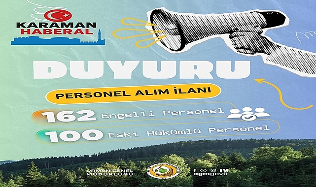 Orman Genel Müdürlüğü, taşra teşkilatında istihdam edilmek üzere engelli ve eski hükümlü/TMY statüsünde toplam 262 daimi işçi alımı yapacağını duyurdu. Alım, ilgili yasal düzenlemeler ve 4857 sayılı İş Kanunu kapsamında gerçekleştirilecek.