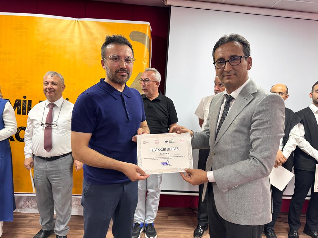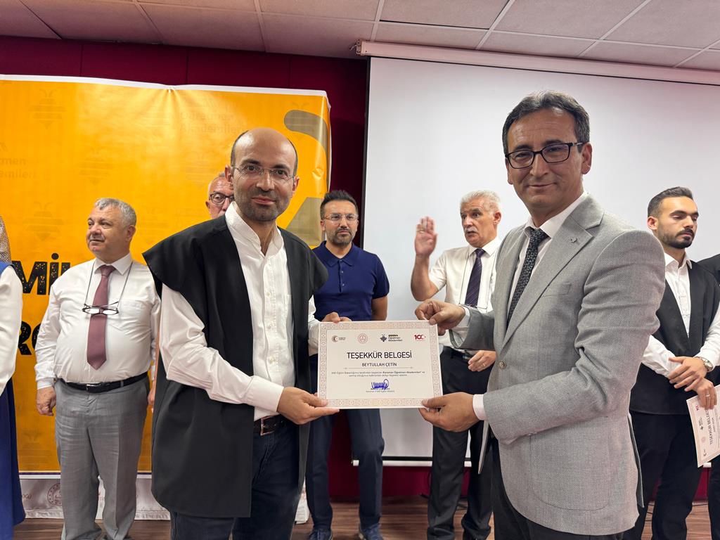 Programın sanat bölümü ise katılımcılara anlamlı bir müzik dinletisi sundu. Tasavvuf musikisi icrası, salonda huzurlu ve manevi bir atmosfer oluşturdu. Dinletinin ardından, yıl boyunca düzenlenen akademi etkinliklerine aktif olarak katılan öğretmenlere sertifikaları takdim edildi.