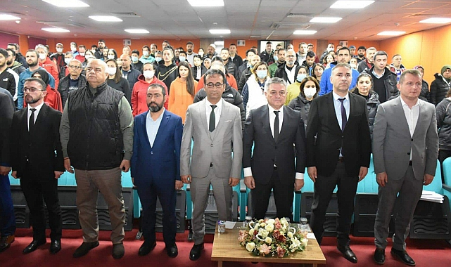 Saygı duruşunda bulunulması ve İstiklal Marşı'nın okunmasıyla başlayan programın açılış konuşmasını yapan İl Millî Eğitim Müdürü Mehmet Çalışkan, spor ve eğitimi ayrılmayan iki unsur olduğunu belirterek spordaki mücadele ruhunun her alana taşınması gerektiğini ifade etti. Çalışkan, "Spor terimleri arasında yer alan mücadele ruhunu bizler yer aldığımız coğrafyamızda yaşıyoruz. Eğitimciler olarak bizim vatanımızın hiçbir evladını ıskalamamız gerekiyor. Her çocuğumuz bizim için kıymetli ve değerli. Bu düşünceden hareketle amacımız ailelerimizden aldığımız emaneti yani öğrencilerimizi en iyi şekilde yetiştirip vatanı ve milleti için çalışan bireyler görmektir. Eğitimde, sporda veya sanatta hiç fark etmez her bireyin kendi alanında yetişmiş bireyler olarak geleceğe adım atması gerekir. Bu bağlamda toplantının eğitim camiamıza önemli katkılar sağlayacağını ifade ederek hayırlara vesile olmasını diliyorum." dedi.