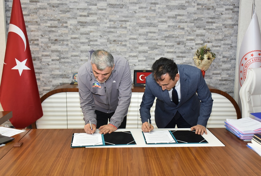 İl Millî Eğitim Müdürlüğünde gerçekleşen imza törenine, İl Millî Eğitim Müdürü Mehmet Çalışkan ile Karaman Umut Eli Spor Kulübü Başkan Yardımcısı Coşkun Beyaz katıldı.